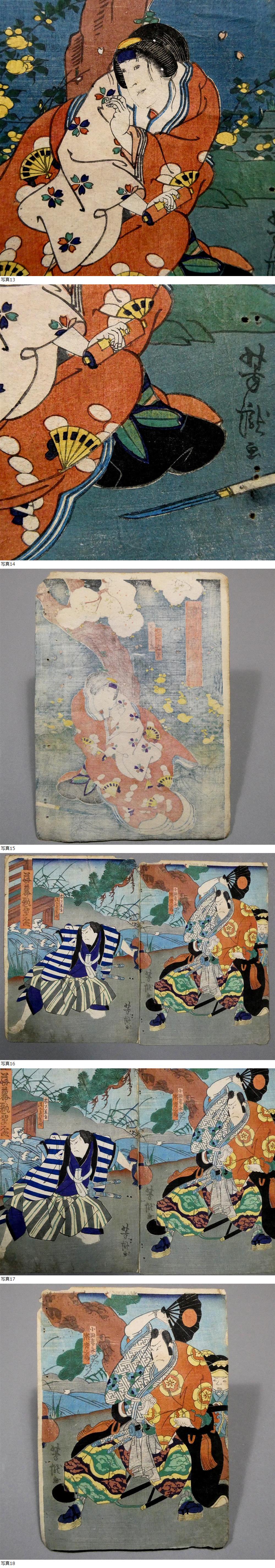 上方絵 夜桜 4枚一括◆2枚続×2セット◆歌川(中井)芳瀧◆江戸時代~ 木版浮世絵■役者絵 芝居絵 歌舞伎 大阪 京都 浪花■五粽亭広貞 9 收藏