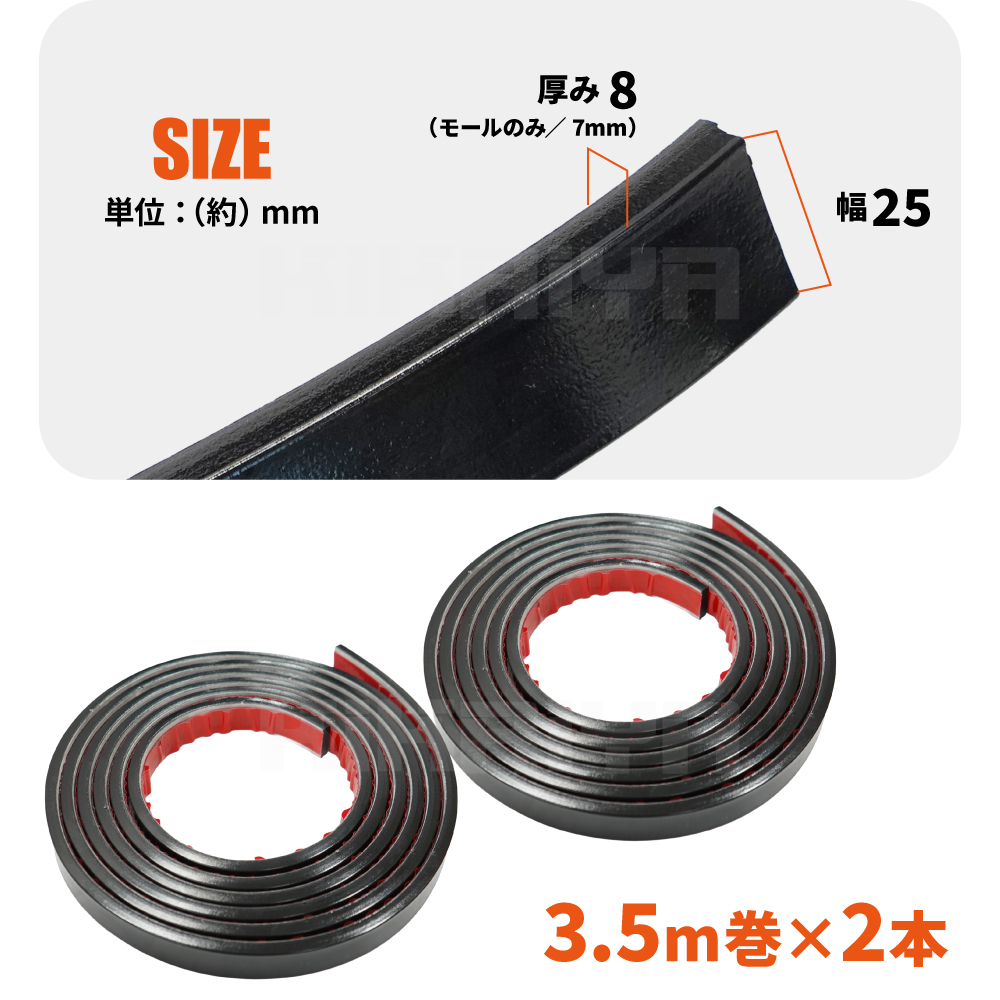 ジムニー サイドモール 3.5m巻 2本 ブラック 幅25mm 厚み8mm 汎用 カーパーツ カーアクセサリー 外装パーツ 收藏