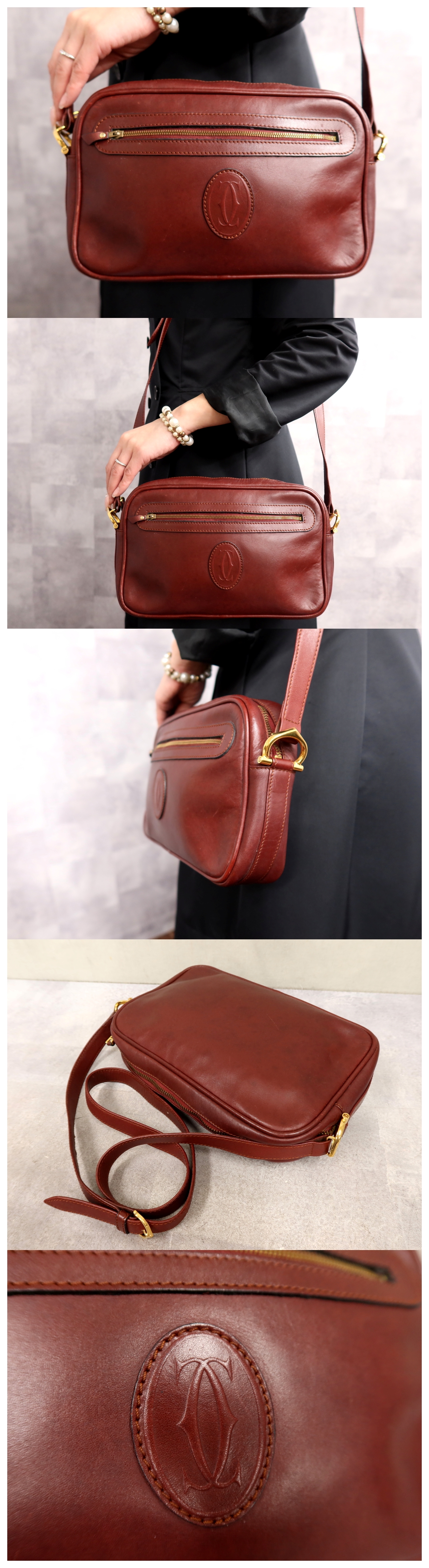 ●超美品●Cartier カルティエ●マスト●ロゴ型押し●カーフ レザー 本革●ショルダー バッグ●ボルドー●G金具●ヴィンテージ●Js65349 收藏