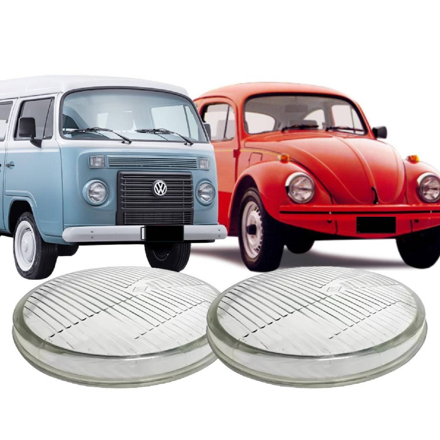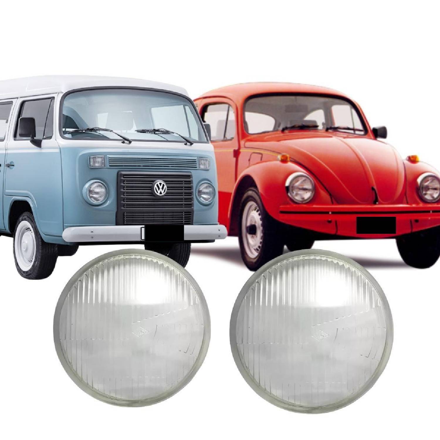 2個セット ペア ヘッドライト ガラス / レンズ 平面 空冷VW バス コンビ T2 フォルクスワーゲン バグ ビートル T1 1967~1985年式