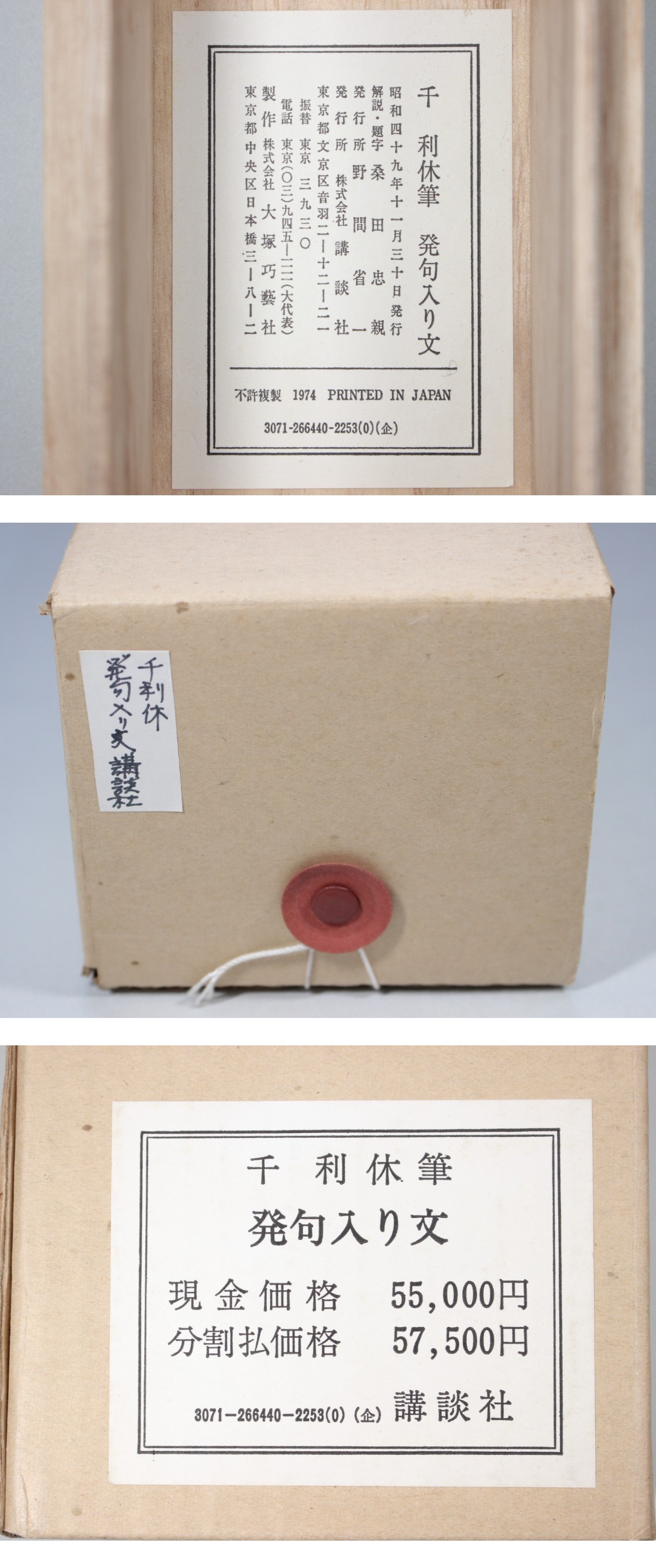 【複製工芸】 千利休『発句入り文』紙本 印刷 工芸 掛軸 共箱 外函 解説書付き 講談社 茶道具 茶掛 收藏