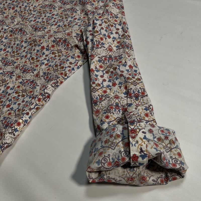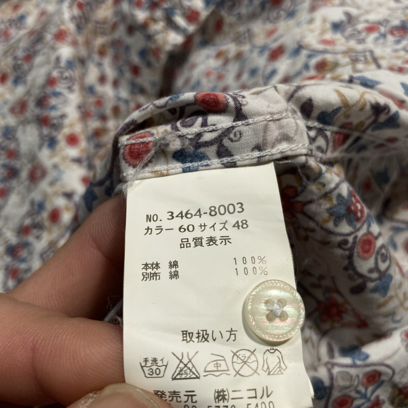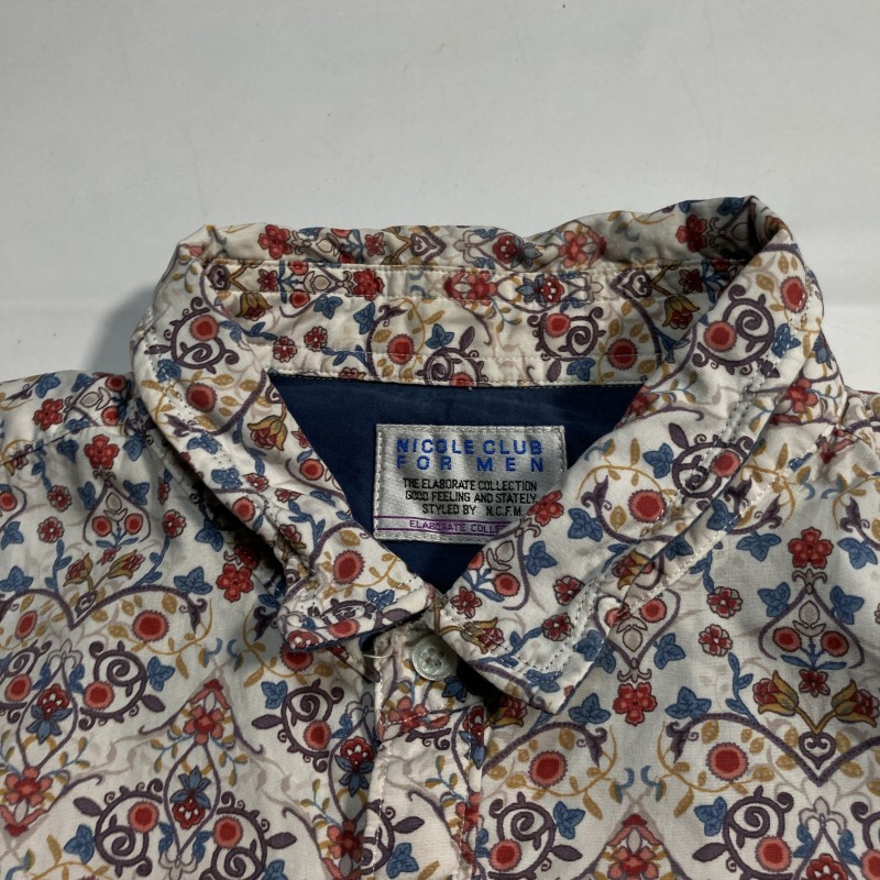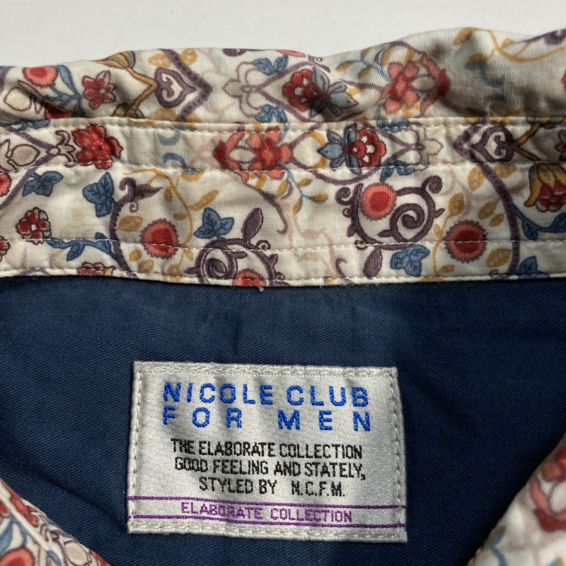 NICOLE CLUB FOR MEN★春夏リゾート★オリエンタル花柄 襟&袖ワイヤー 長袖シャツ ミニカラー フローラル 白 48 ニコルクラブ 收藏