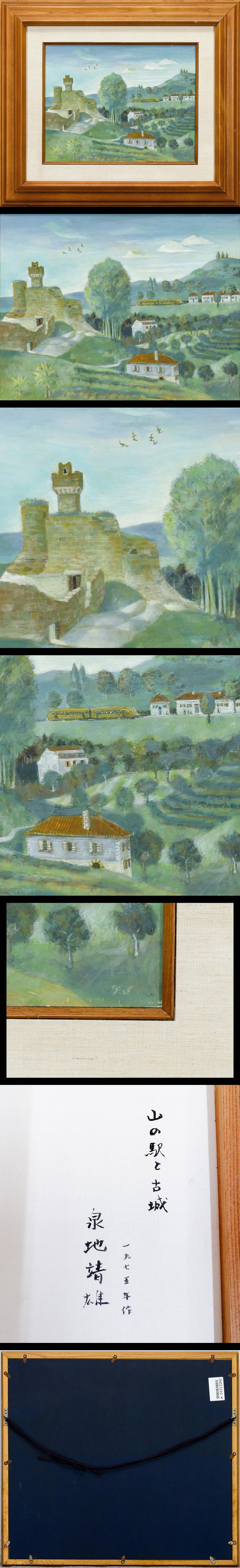【真作】【WISH】泉地靖雄「山の駅と古城」油彩 6号 1975年作 ◆静かな丘に佇む古城 〇二紀会委員 文部大臣奨励賞 #26023210 收藏