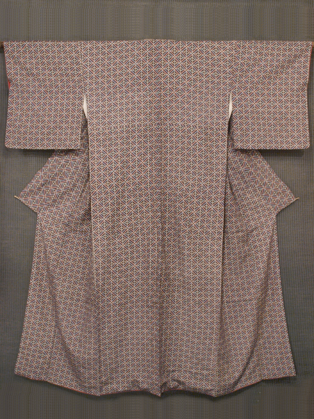 幾何襷文 型染 染め紬 小紋 丈158 TALB01005風楽 |