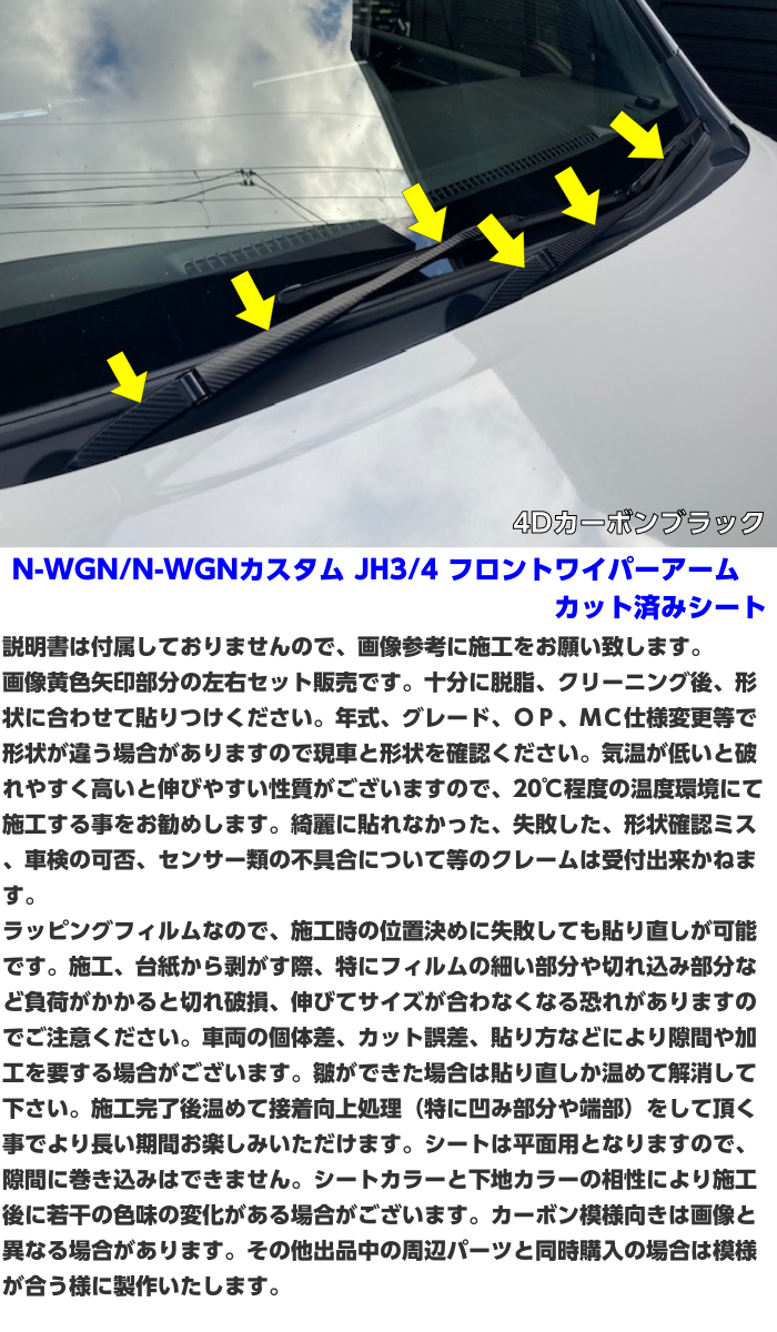 N-WG/N-WGNカスタムJH3/JH4 フロントワイパーアームカット済みシート MC仕様変更やOP、グレード等で形状が異なる場合がありますので現車をご確認ください。
