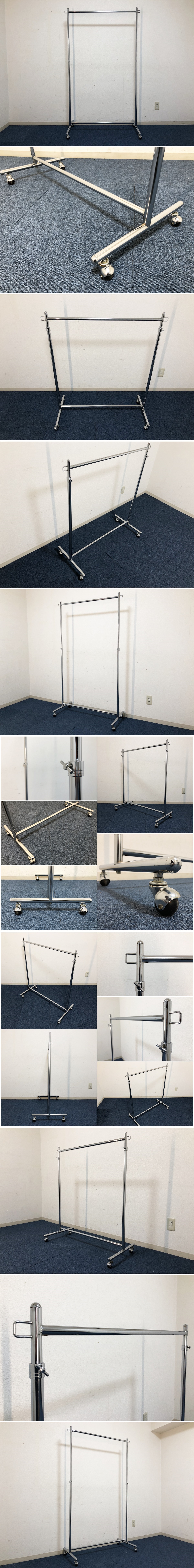 シングルハンガーラック 業務用 ハンガープロ 360°回転大経ボールキャスター 【商品詳細】 ■本体サイズ:幅990×奥行き460×高さ1100~1700mm ■キャスター高:60mm ■全耐荷重:80kg サイドフック:1本1kg(2ヶ所付き) ※採寸は目安程度でお考え頂き多少の誤差は了承願います。 ■洋服やかばんを掛けるのにとっても便利なハンガーです! ■高さ調節はお好きな位置に無段階調節できます。 ■シンプルデザイン、オールクロームメッキ仕上げ。 ■軽いので女性一人でもラクラク移動可能です。 ■左右両サイドにもチョイかけ出来ます。 ■組立品(購入者様にて組立)工具は付属しません。 ■小傷・薄錆は御座います、気になさる方はご遠慮ください。 ■画像はイメージです、ハンガーラック以外の付属品は御座いません。 ■他気になる事など御座いましたらお気軽に質問下さい。 (注意) 環境、モニター画面等により色合いが異なります。 【商品管理番号】302 |