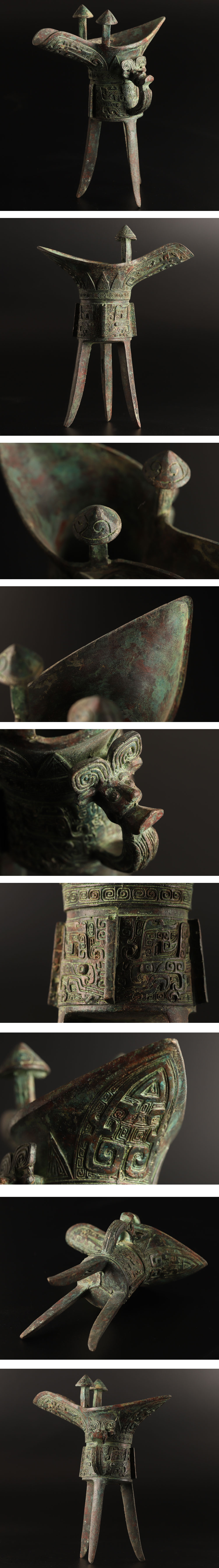 【流】中国美術 青銅器 漢銅器 饕餮紋 爵 高20.5cm UB943 收藏