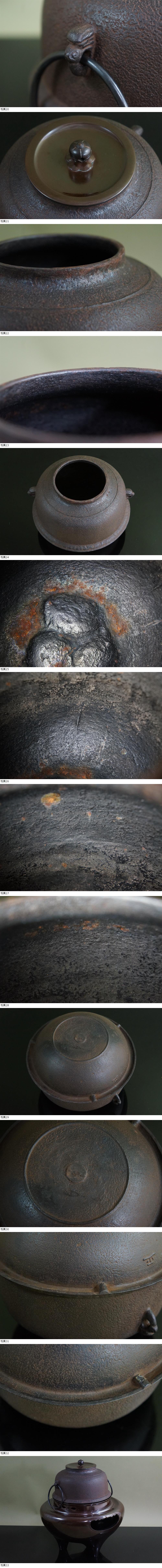 ■ 唐銅鬼面風炉釜「宝積正一」(共箱共布)<釜鐶・外紙箱付き>★ 宝積 正一 茶釜 鉄釜 茶道具 收藏