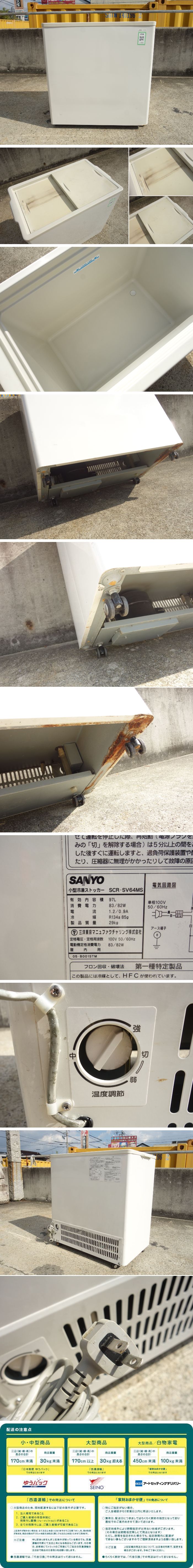 【中古】K▼サンヨー 冷凍庫 冷凍ストッカー フリーザー アイス 冷凍食品 97L スライド扉 100V SCR-SV64MS (31683) 收藏