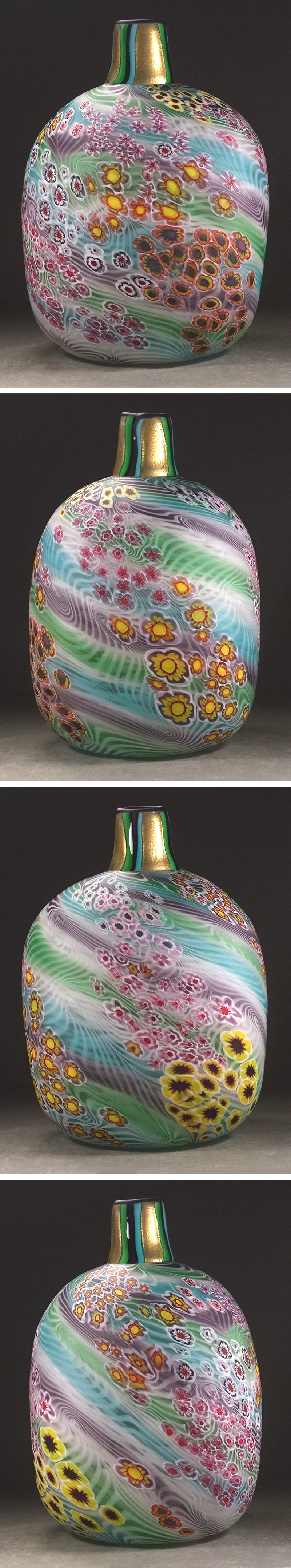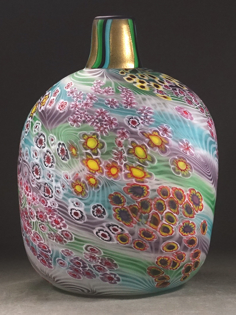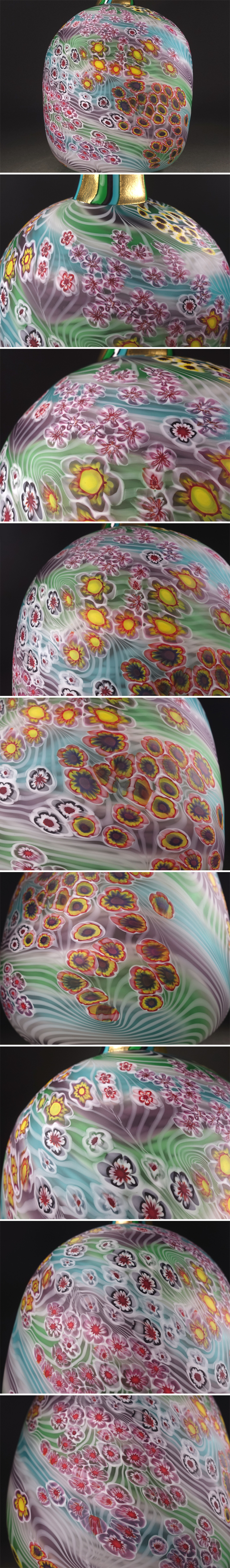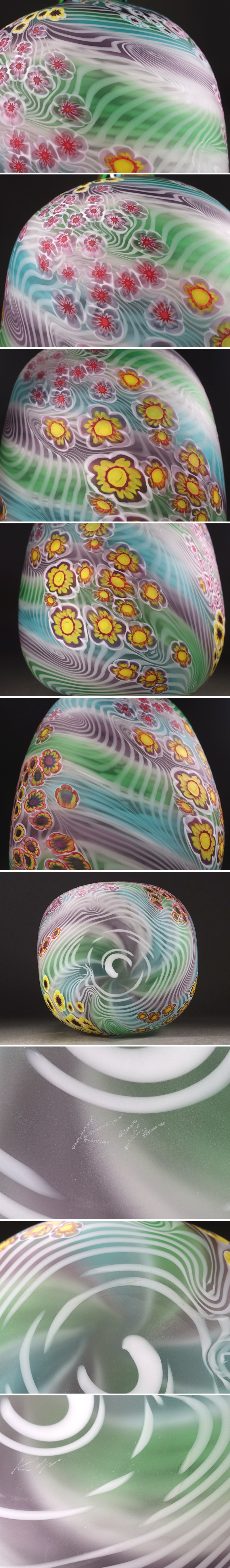 ∇花∇ガラス工芸界の巨匠【石井康治】秀逸作 手吹き硝子彩花文器 花々散しの花瓶・花器 高さ30cm 共箱付 花筏のような風情ある文様表現 收藏