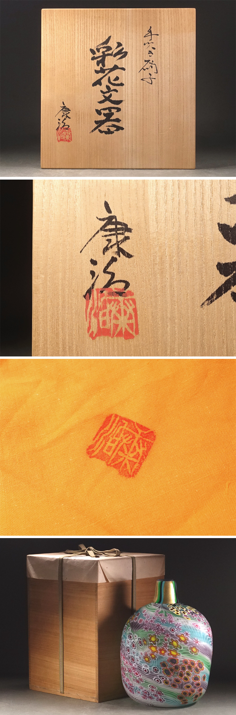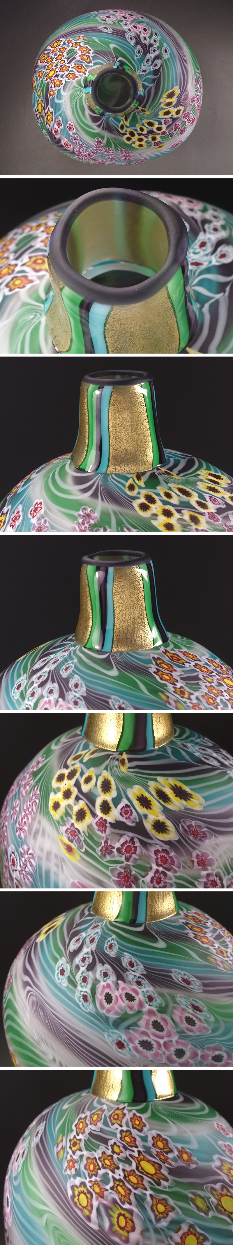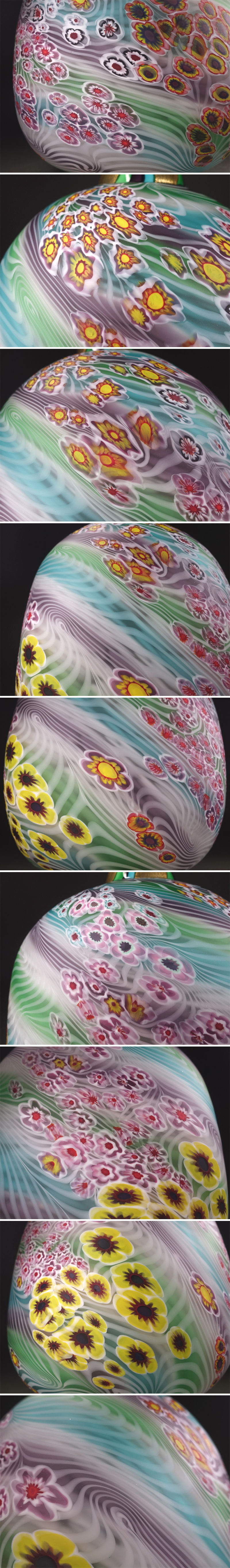 ∇花∇ガラス工芸界の巨匠【石井康治】秀逸作 手吹き硝子彩花文器 花々散しの花瓶・花器 高さ30cm 共箱付 花筏のような風情ある文様表現 收藏
