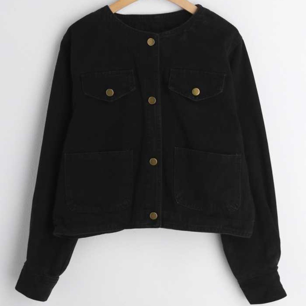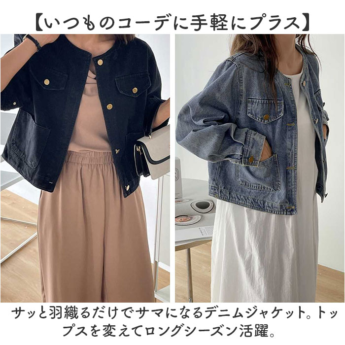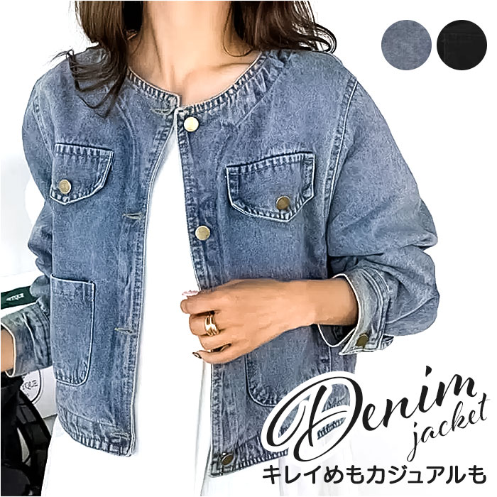 ☆ ブラック ☆ レディース デニムジャケット おしゃれ デニムジャケット レディース ノーカラージャケット デニム ジャケット 收藏