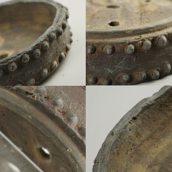 【中古】盆栽鉢 常滑 秀峰 小型 長辺 約 15.5cm 丸鉢 鋲打 泥物 現品 中古鉢 收藏
