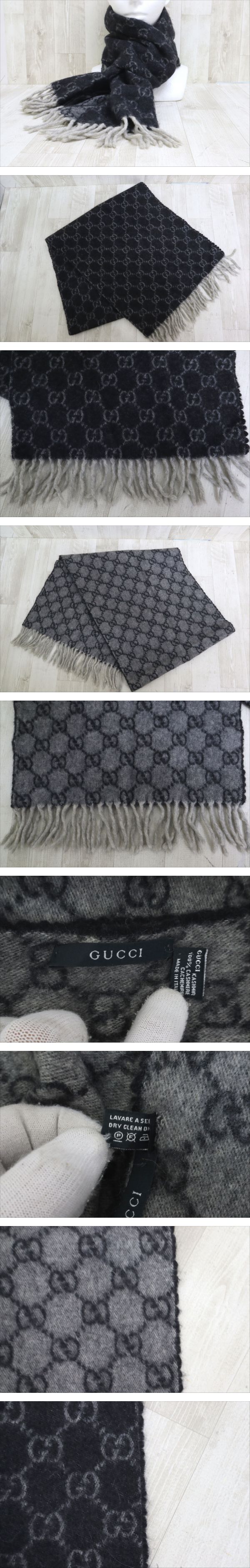 【ト萬】GUCCI グッチ GG柄 総柄 リバーシブル マフラー ストール カシミヤ グレー チャコールグレー SA000RNP35 收藏