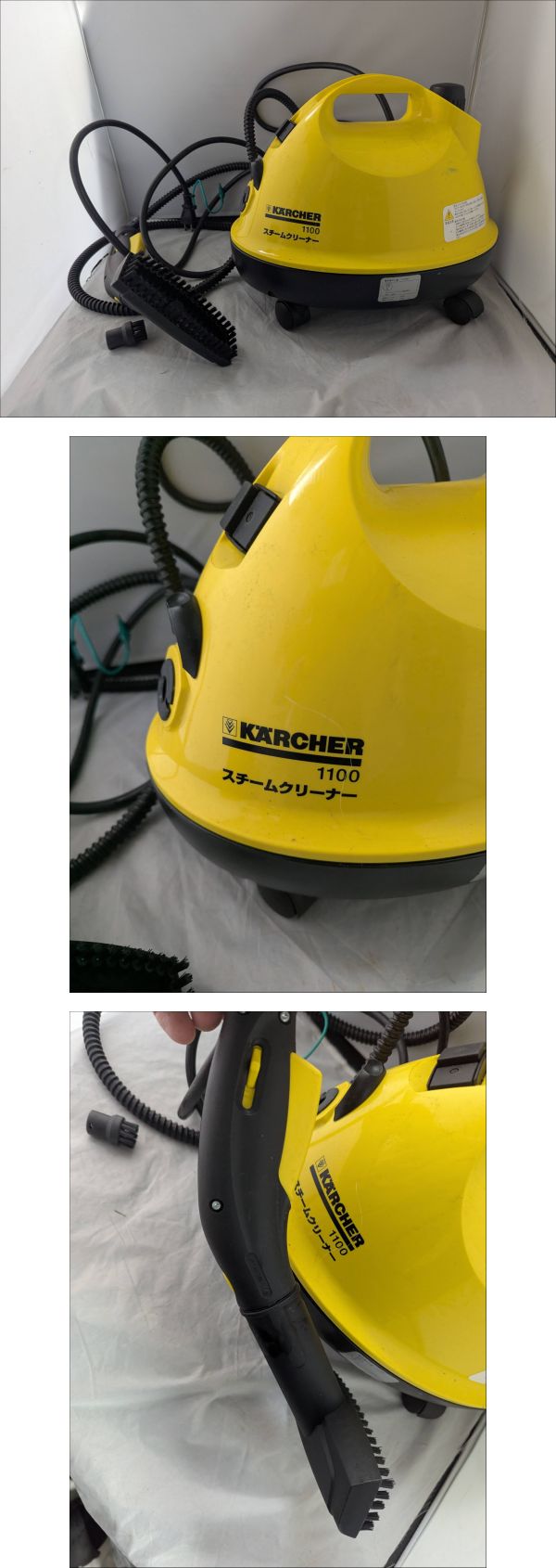 | 商品説明 | 【商品について】 ご覧いただきありがとうございます。 この度出品いたしますのは「 ●ケルヒャー スチームクリーナー 1100 動作確認済み● 」でございます。 個人所有物の整理のため、出品する運びとなりました。 中古品ではございますが、ご活用いただける方にお譲りできれば幸いです。 商品の状態、付属品、寸法等につきましては、掲載写真にてご確認をお願いいたします。 補足:当方、ペットの飼育および喫煙の習慣はございません。お気にされる方はご参考ください。