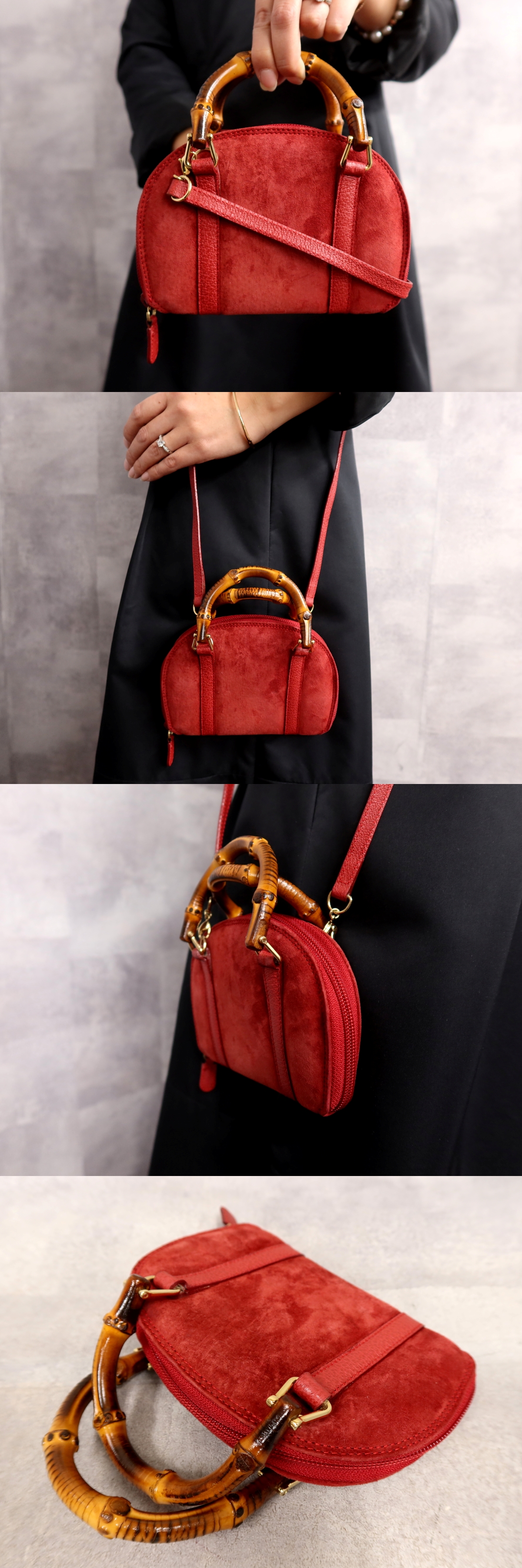 ●超美品●GUCCI グッチ●バンブー●スエード カーフ レザー 本革●2way ミニ ハンド バッグ●赤●ゴールド金具●イタリア製●Js63858 收藏