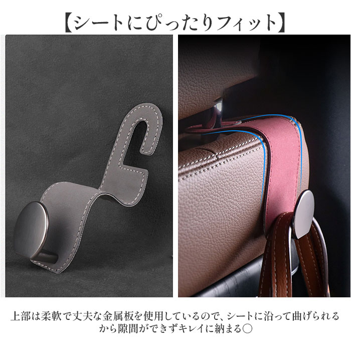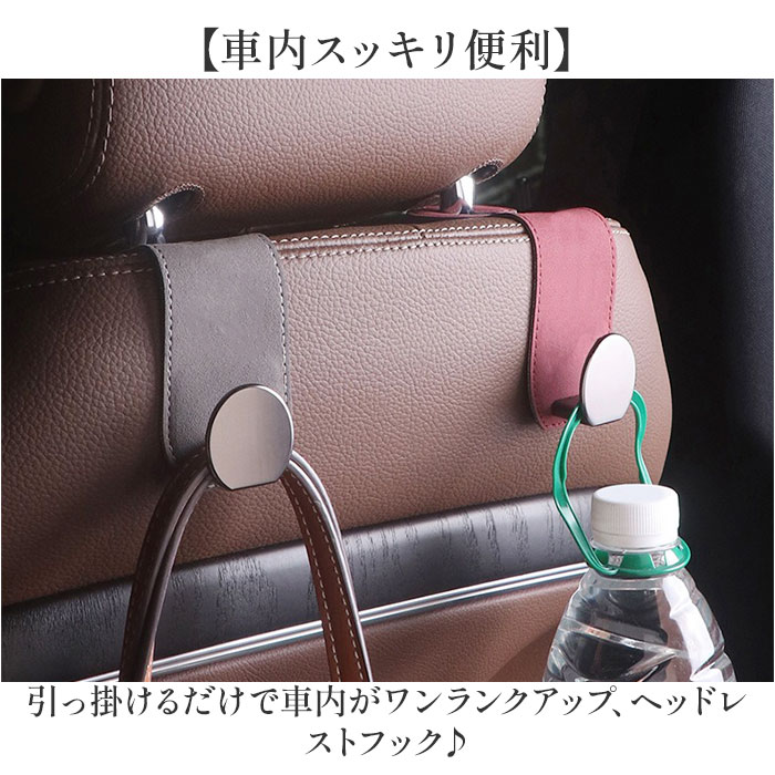 | 商品説明 | ・・【車内スッキリ便利】 ・引っ掛けるだけで車内がワンランクアップ、ヘッドレストフック♪ ・【シートにぴったりフィット】 ・上部は柔軟で丈夫な金属板を使用しているので、シートに沿って曲げられるから隙間ができずキレイに納まる〇 ・【上質スウェード調】 ・高級感のある素材が車内の雰囲気をグレードアップさせる、こだわりのデザイン性。 ・【安全丸型フック】 ・角のない形状で、バッグや荷物を優しく守りながら、小さなお子様がいても安心して使える! ・【しっかりとした耐久性】 ・フックには大きめの金属板を使用し強度がアップ。 |