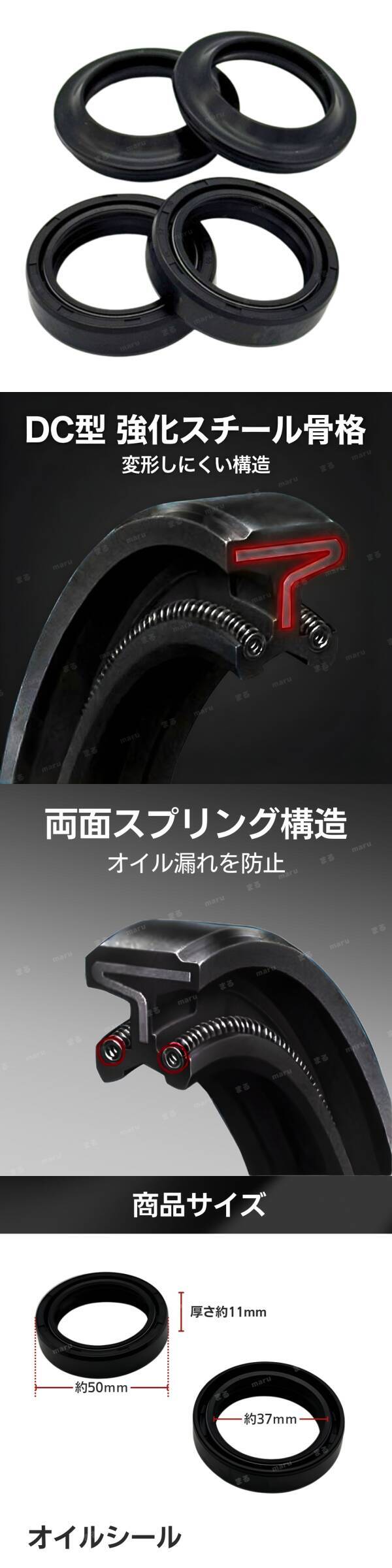 オイルシール ダストシール 37mm 50mm φ37 φ50 4個 汎用 ホンダ CRF230F バイク フロントフォーク サスペンション リペア 補修 交換 收藏