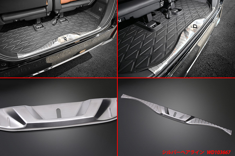 | 商品特徴 | ・ステンレスの輝きをリアゲートオープン時にインパクトを与える ・ドレスアップ効果と荷物の積み下ろし時で生じる傷防止にも効果を発揮 |