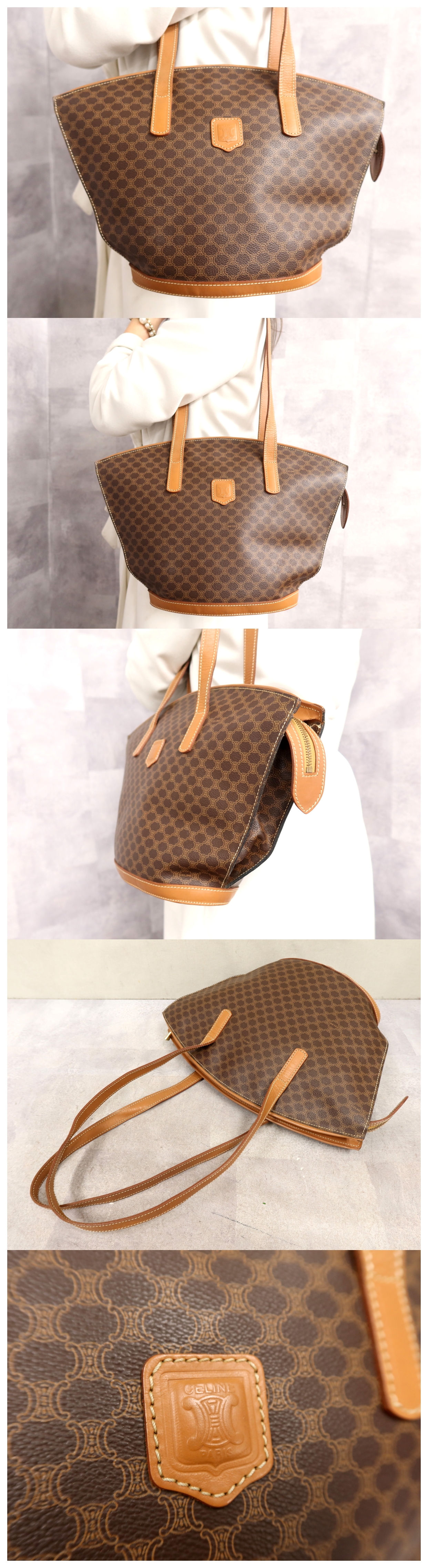 超美品●CELINE セリーヌ●マカダム●ロゴ型押し●PVC カーフ レザー 本革●ハンド バッグ●ブラウン系●G金具●ヴィンテージ●B5●Js64299 收藏