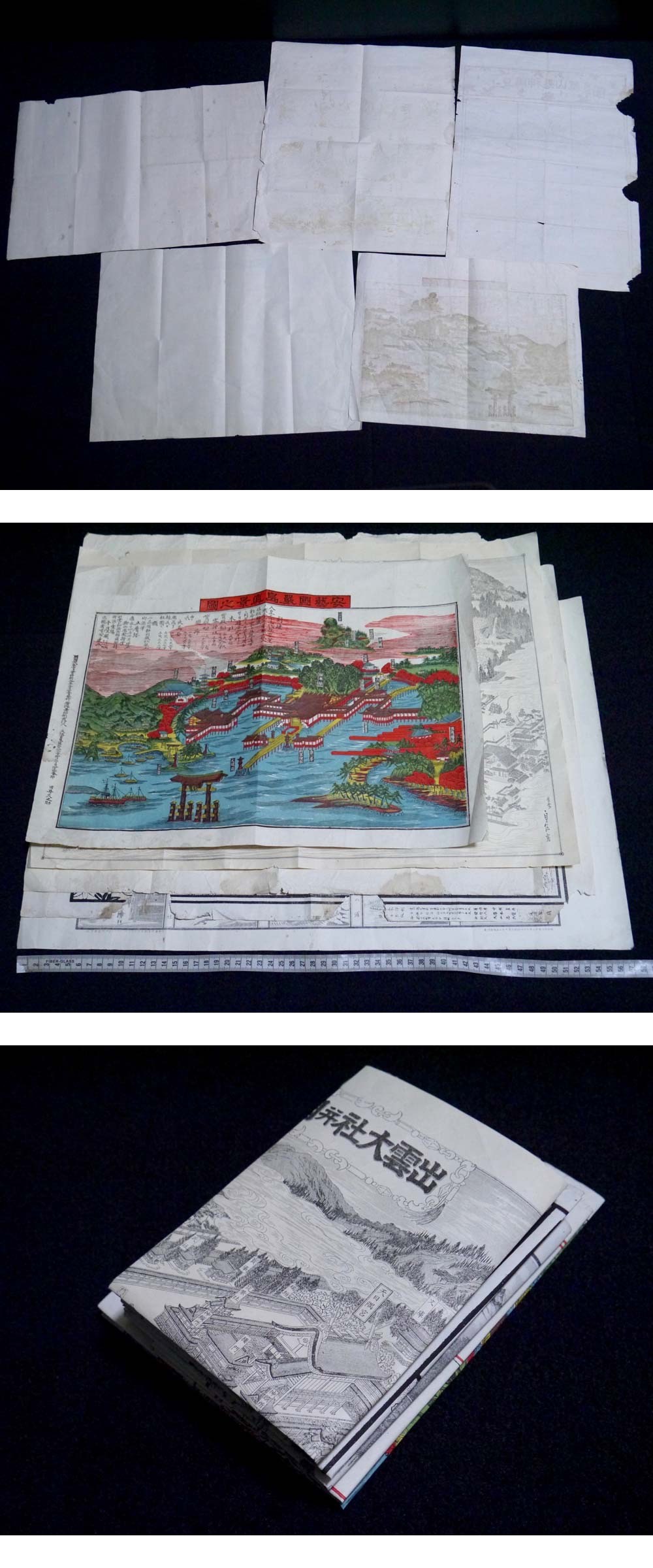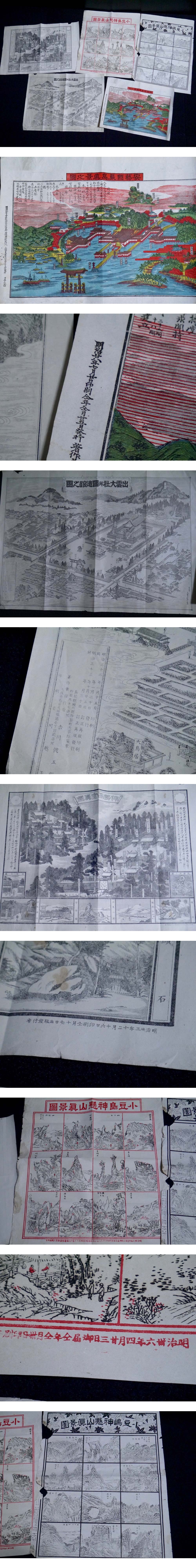 戦前 明治期 図画 5点(商品説明内に詳細画像あり)安芸国厳島真景之図 出雲大社併國造館之図 伊勢両宮真図 小豆島神懸山真景図 資料 收藏