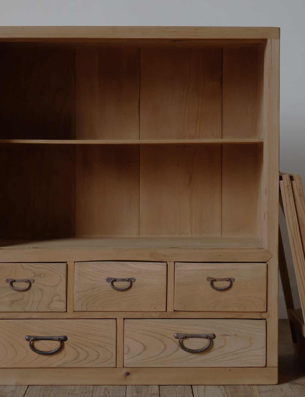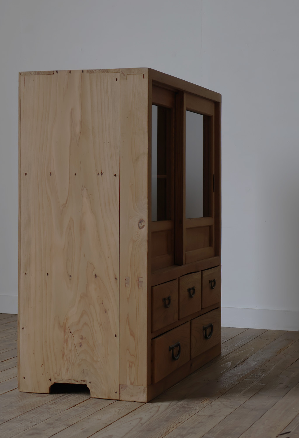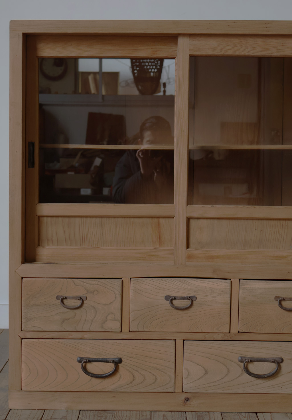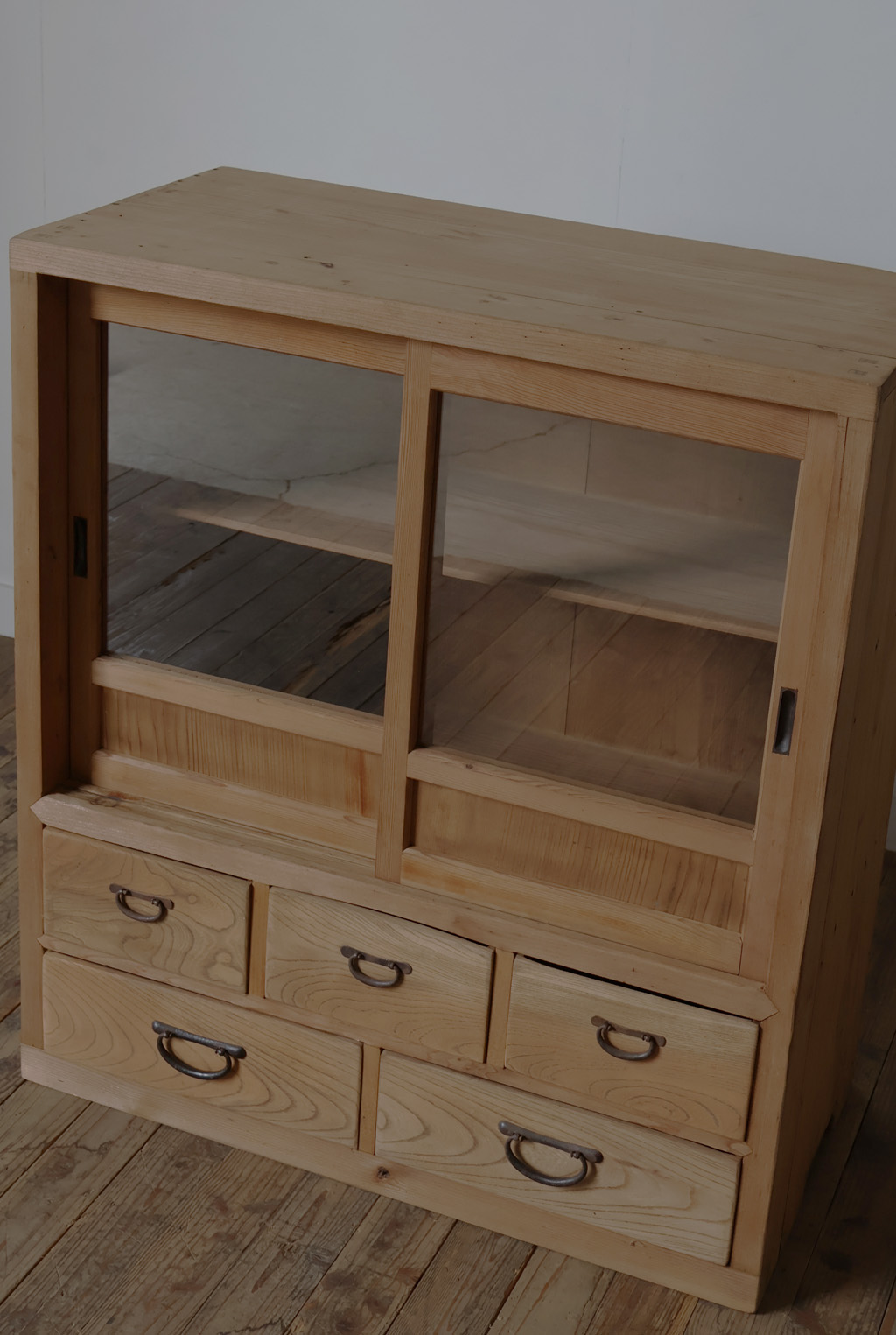 【引き出し5杯◆古いガラス戸棚】アンティーク店舗ギャラリーカフェ什器飾り棚食器棚本棚展示台陳列棚チェストガラスケースキャビネット机 收藏