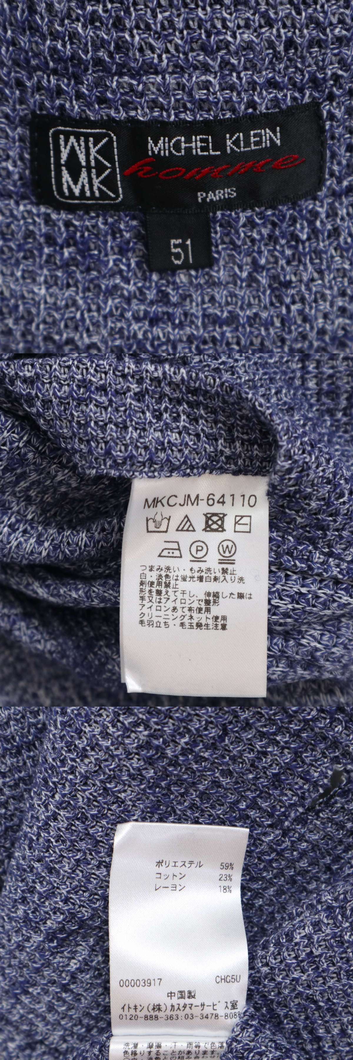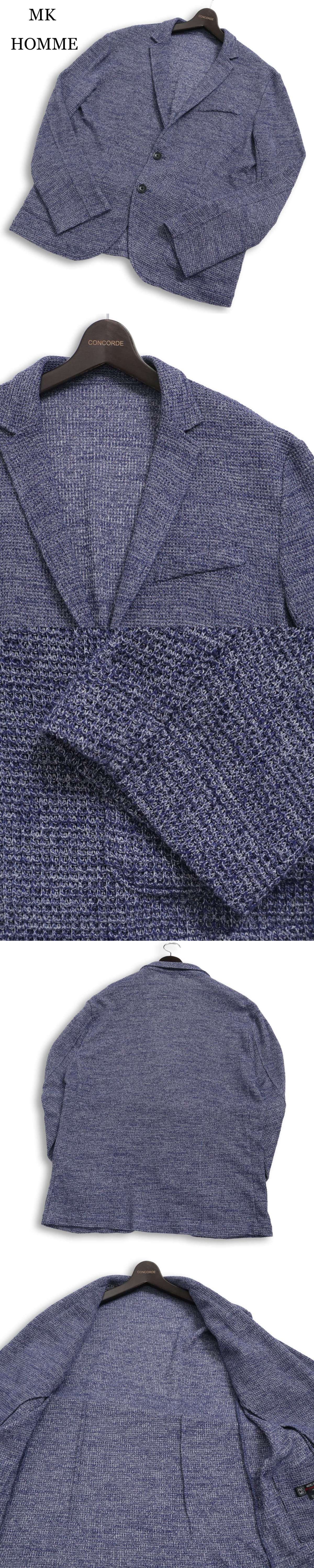 MK HOMME ミッシェルクラン オム 春夏 ニット★ レーヨン テーラード ジャケット Sz.51 メンズ ネイビー 收藏