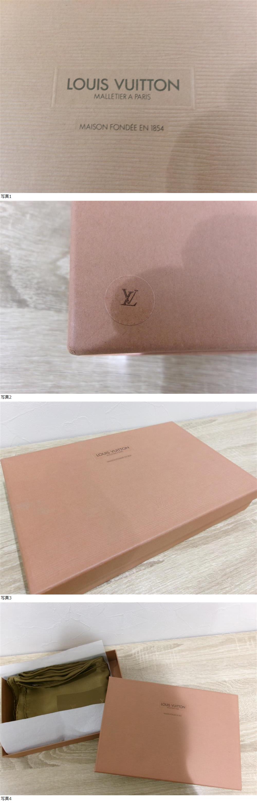 LOUIS VUITTON ルイヴィトン シルク スカーフ 色 グリーンカーキ LV ロゴ シルク100% 箱付き レディース 現状品 激安 1円スタート 收藏