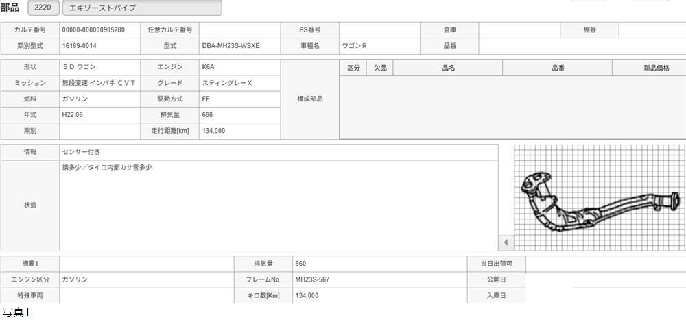 H22年 MH23S ワゴンR スティングレーX エキゾーストパイプ /送料 S/905280 收藏