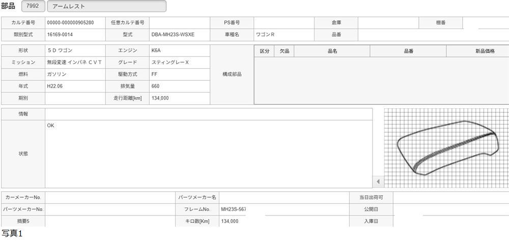 H22年 MH23S ワゴンR スティングレーX アームレスト /送料 ミニ/905280 收藏