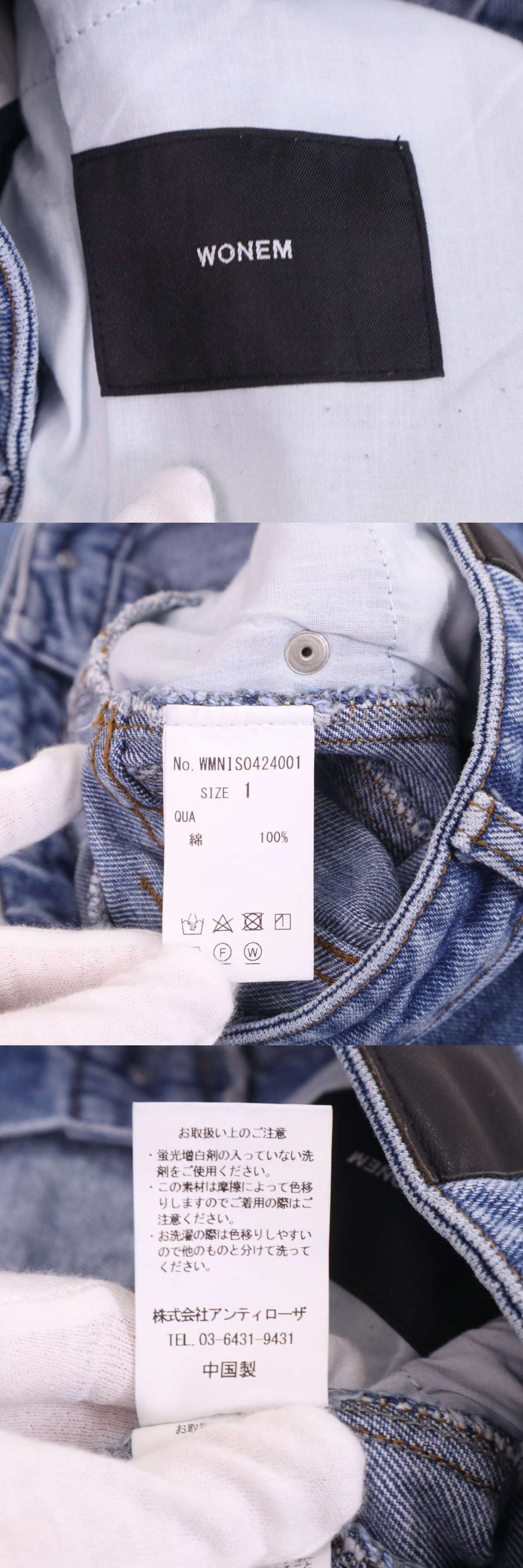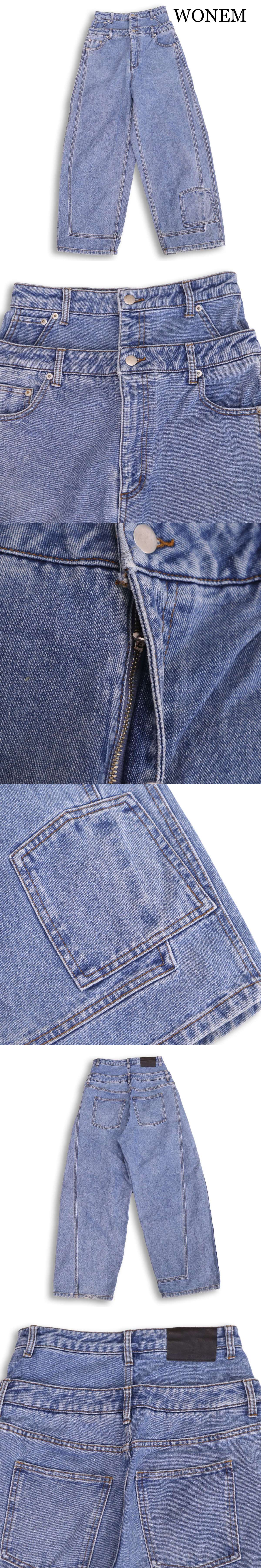 WONEM ウォンエム USED加工♪ ヘムポケット ダブルウエスト デニム パンツ ジーンズ Sz.1 レディース 收藏