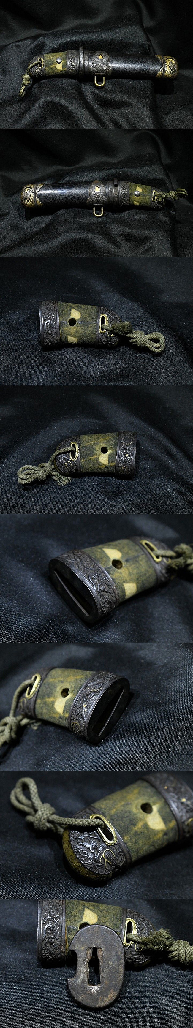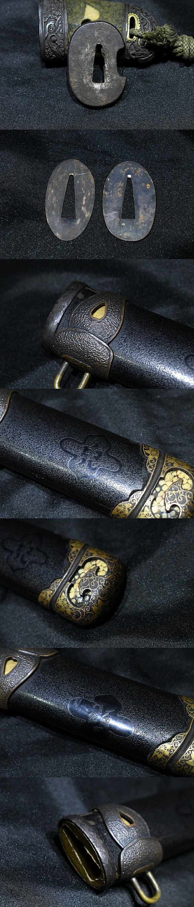 説明:古い蔵から出てきた銘短刀です。金具見事な拵えで中は名刀貞宗です。登録書不要の長さです。