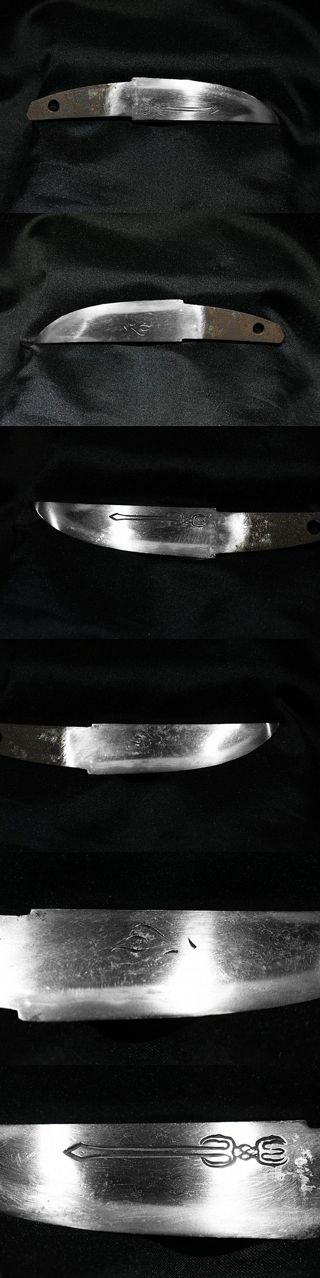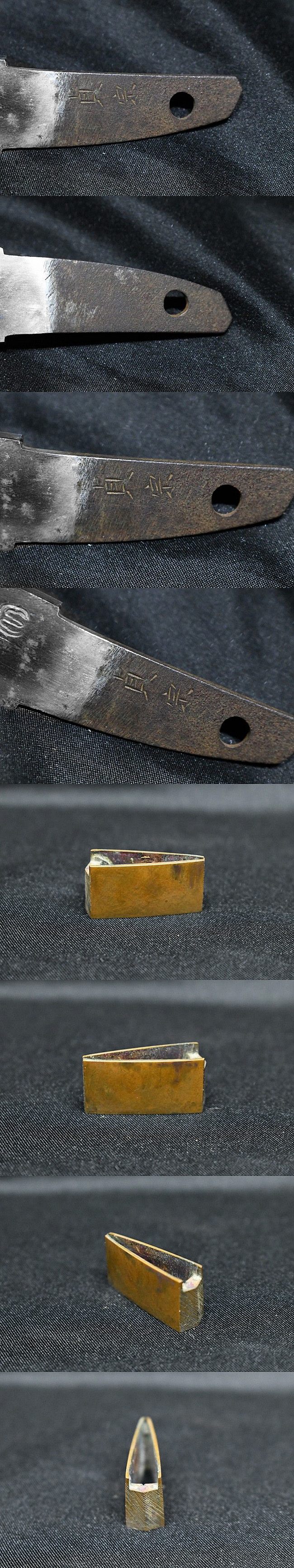 表【貞宗】 裏【-】 目くぎ穴 1個 元幅:約 2.479cm 元重:約 0.550cm 先幅:約 1.906cm 先重:約 0.457cm 刀身重量:約 62.9g(ハバキ・柄をとった状態) ハバキ重量:約 7.9g 柄重量:約 46.8g 柄横:約 6.6cm 鍔重量:約 41.5g 鍔縦:約 4.428cm 鍔横:約 2.977cm 鍔厚さ:約 0.553cm 拵え全長:約 20cm |