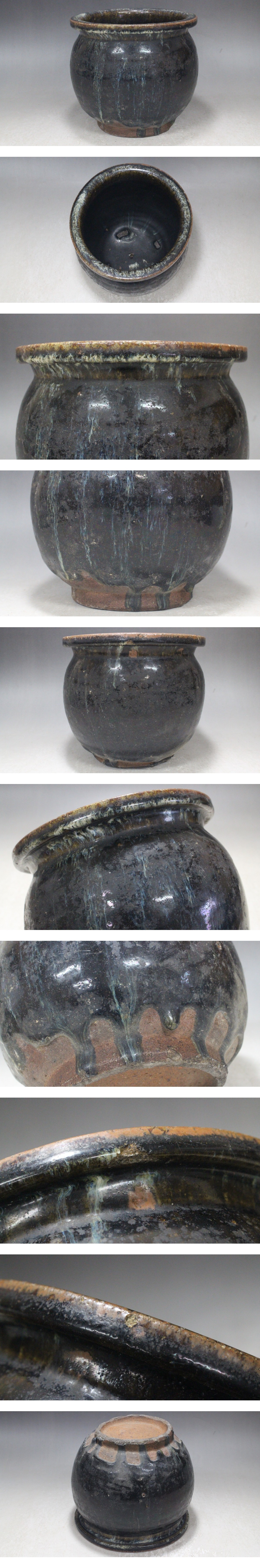 宮城県産 堤焼 小甕 (高さ17cm/約1760g) 地方窯瓶壺壷 時代物 日本陶磁器 ※傷あります ニ79 收藏
