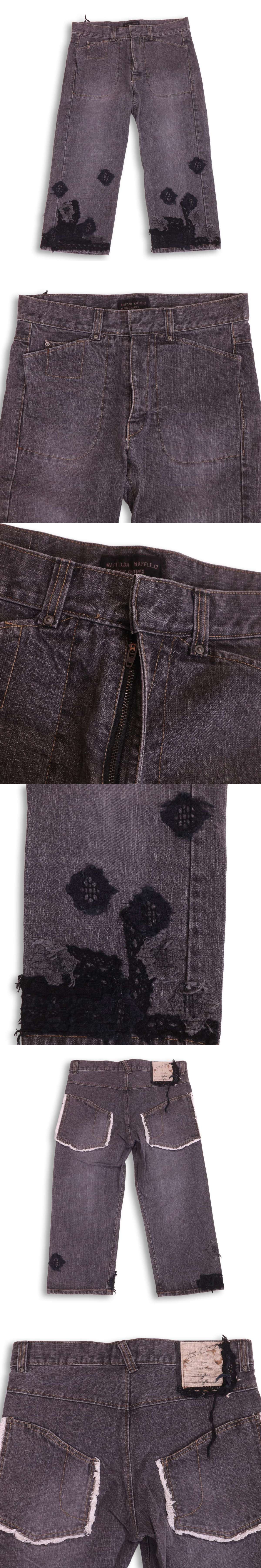 Wafflish Waffle ワッフリッシュワッフル レース リメイク加工♪ デニム クロップド パンツ ジーンズ Sz.L〜XL位 レディース 收藏