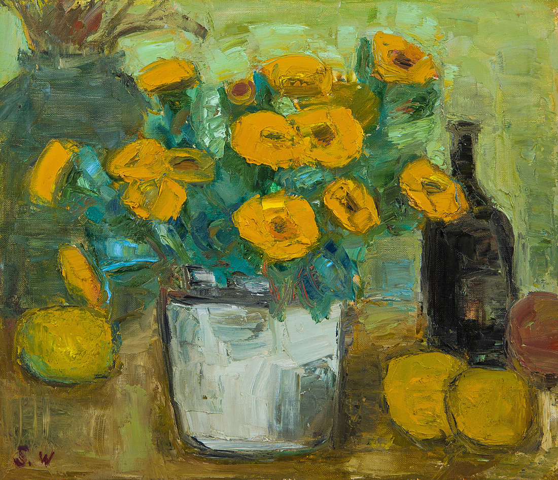 【1on1】真作 渡辺幸子 『花』 油彩 キャンバス 10号 額装 ■ 1939年神奈川県生 新制作協会協友 青木繋大賞展大賞 師:田澤茂 收藏