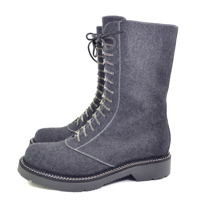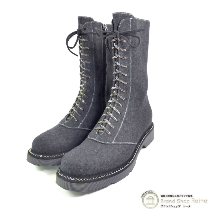 | ジョルジオアルマーニ(Giorgio Armani) スエード サイドジップ チェーンレース ミドル ブーツ #38 1/2 グレー X1N039(未使用品)中古 |