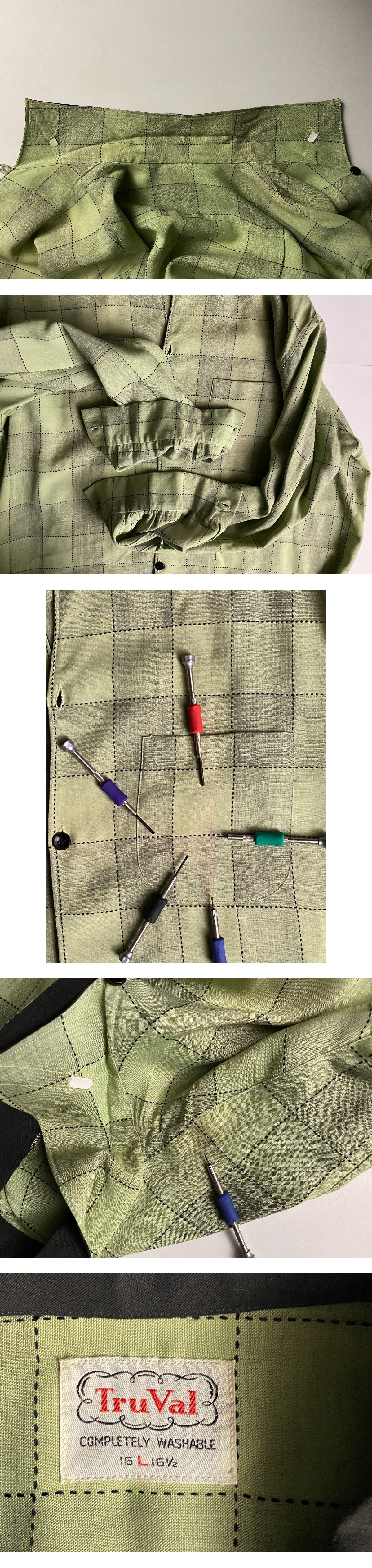 スペシャルビンテージ:50s:Tru Val:カスリ柄:ペパーミントグリーン:ツートーン黒色イタリアンカラーレーヨン長袖シャツ(ロカビリーエルビス 收藏