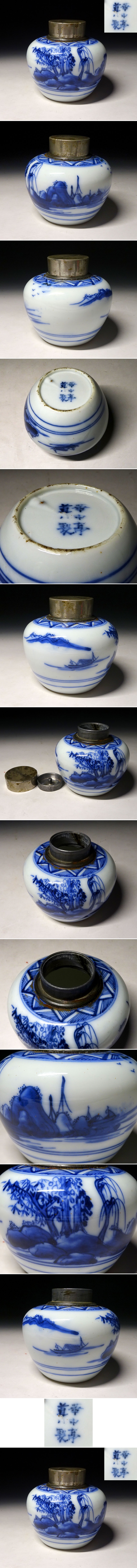緑屋c■ 時代物 華中亭道八 銘 染付 錫蓋 茶入 煎茶道具 古陶磁 i9/2-6008/4-3#60 收藏