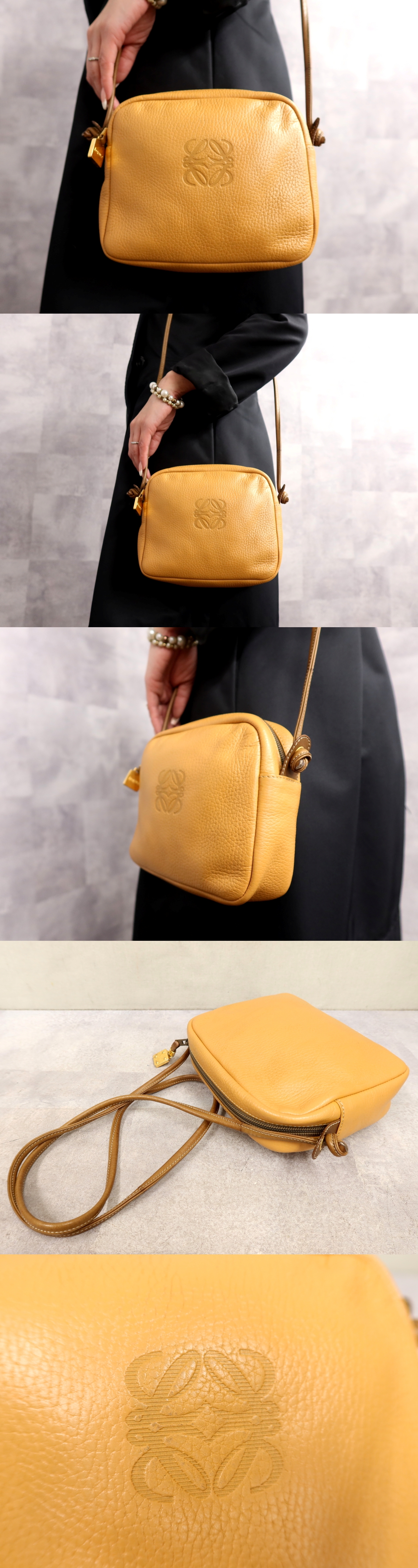 ●超美品●LOEWE ロエベ●アナグラム●ロゴ型押し●カーフ レザー 本革●ショルダー バッグ●ゴールデンイエロー 茶●G金具●収納●Js65458 收藏