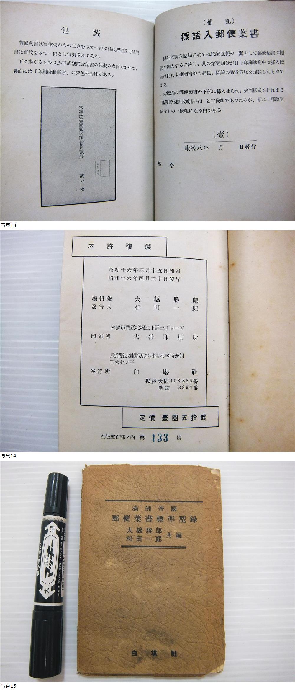 昭和16年 満州帝国 郵便葉書標準型録 和田一郎/大橋勝郎 白塔社 初版500部/133号 戦前 葉書 カタログ 80頁 收藏
