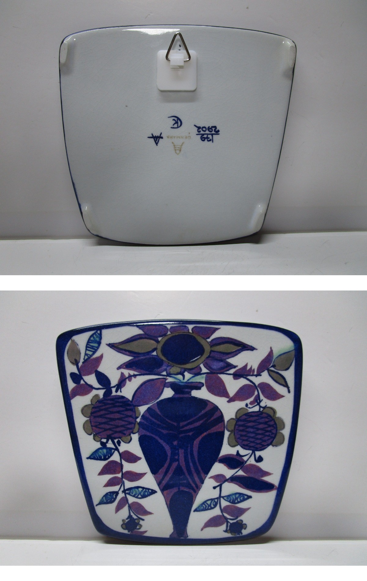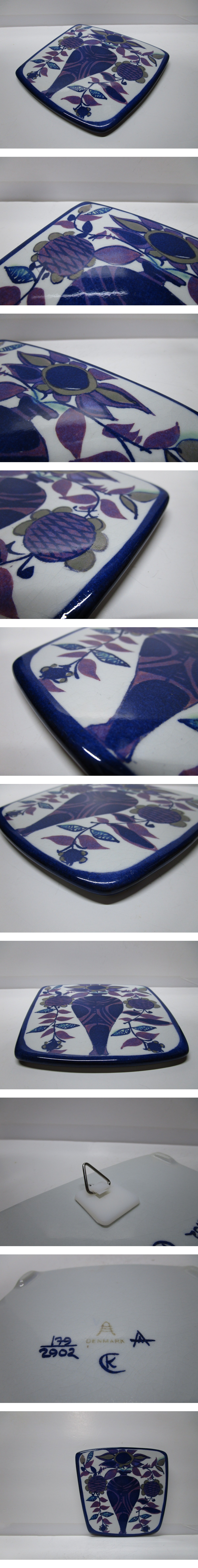 ■縦横:約14cm×約14.5cm ■厚さ:約1cm ■商品の状態:この時代のシリーズにありがちな表層の釉薬に貫入が見られますが、ヒビ割れ、カケ等特記すべき欠損のない、ヴィンテージ品としては悪くない状態です。メーカーマークの下の波線に傷のないA級品です。■その他:裏面にブランドマーク、デザイナーのサインがあります。後付けで壁掛けプレートように吊り金具を貼付してあります。