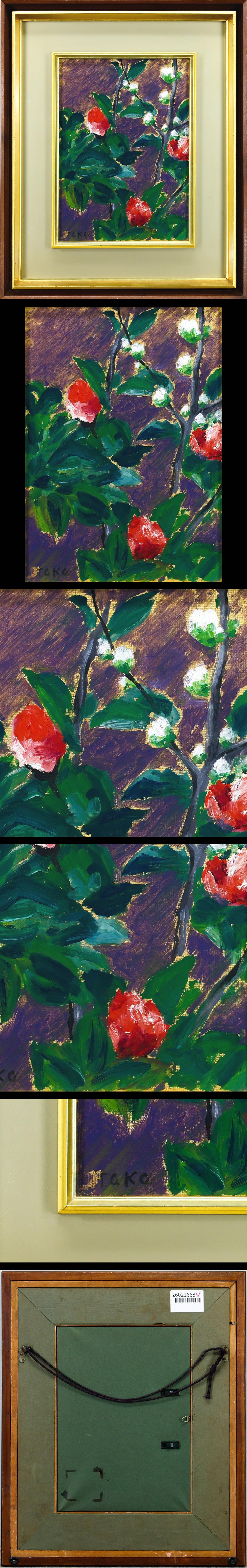 【WISH】サイン有:TaKa 油彩 4号 ◆深い紫に映える情熱の赤い花 #26022668 收藏