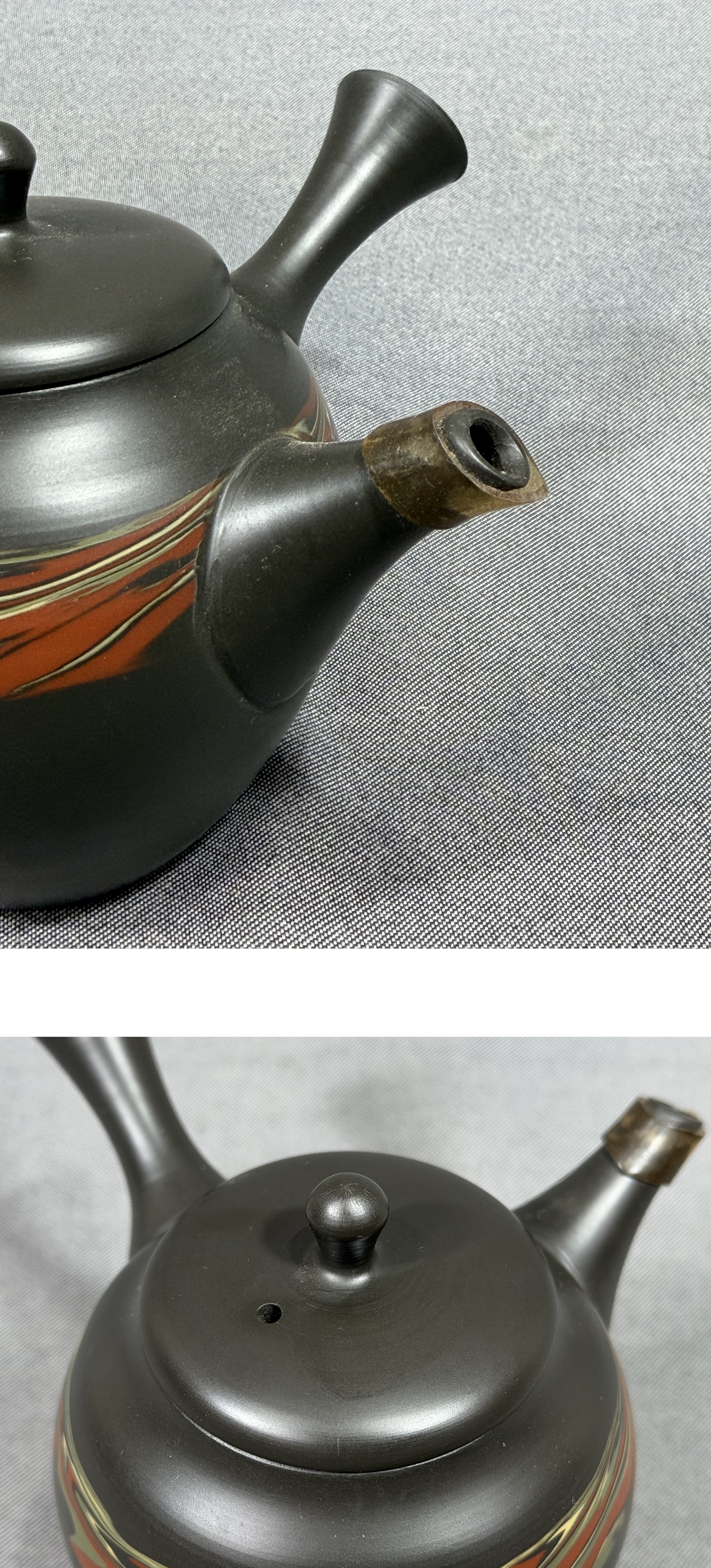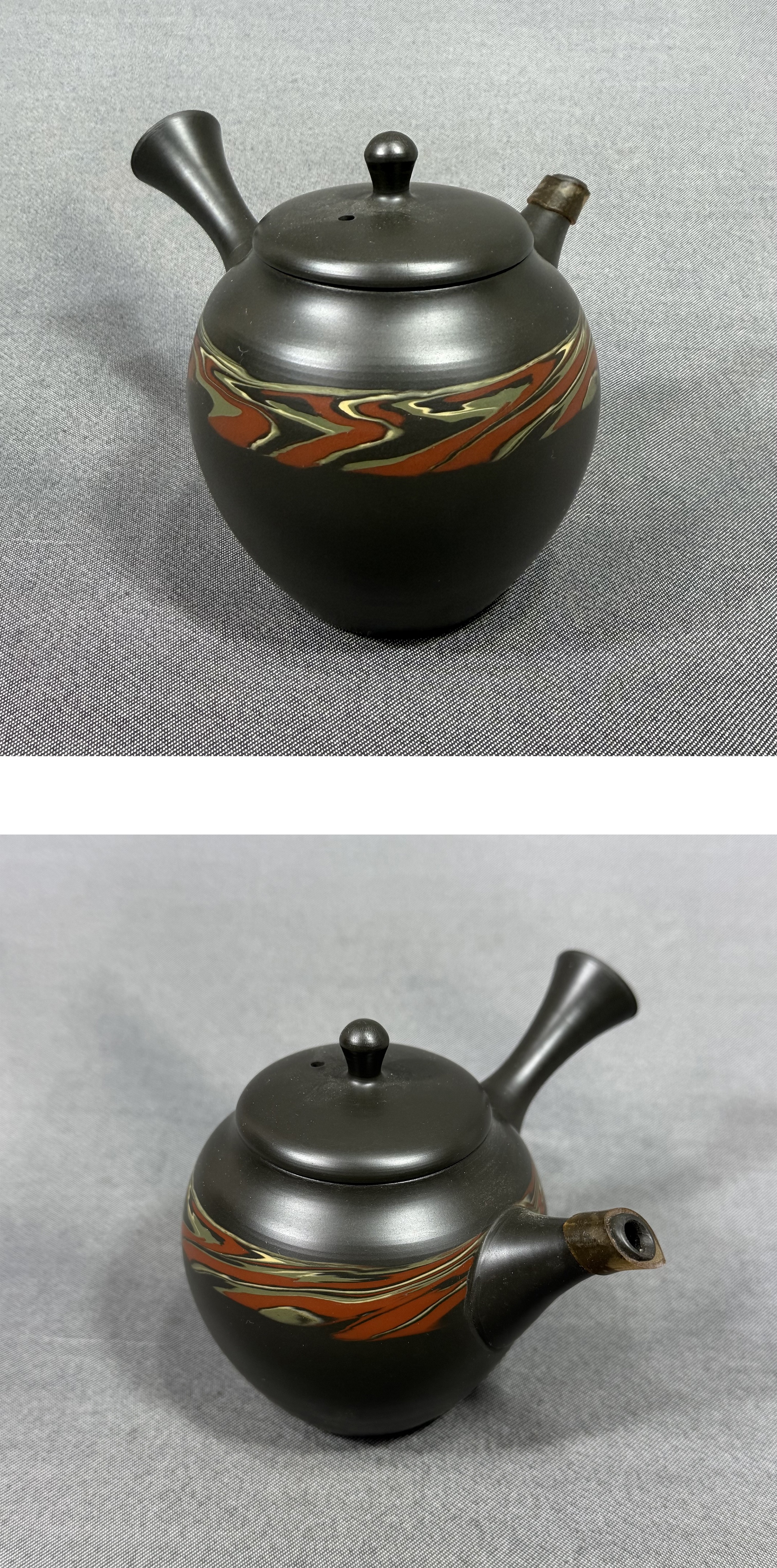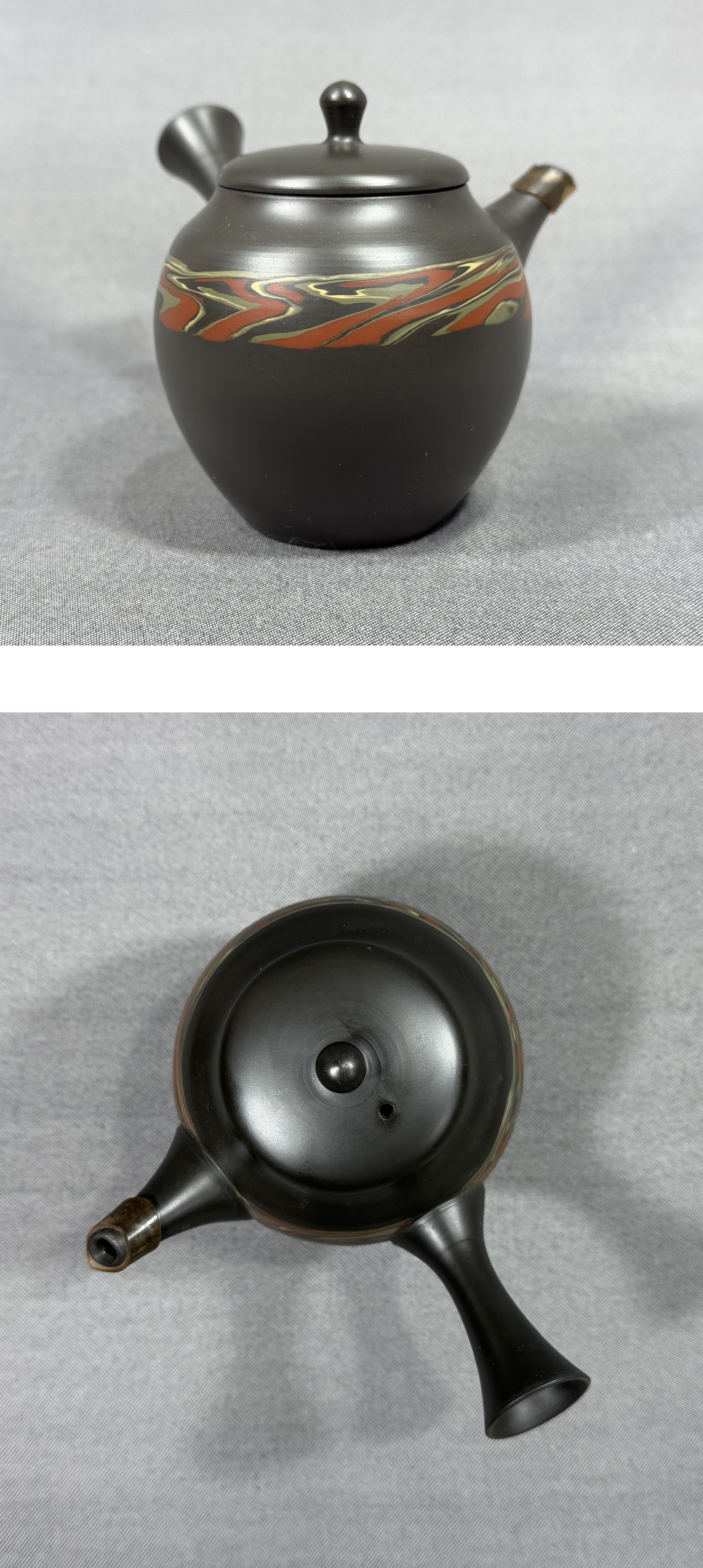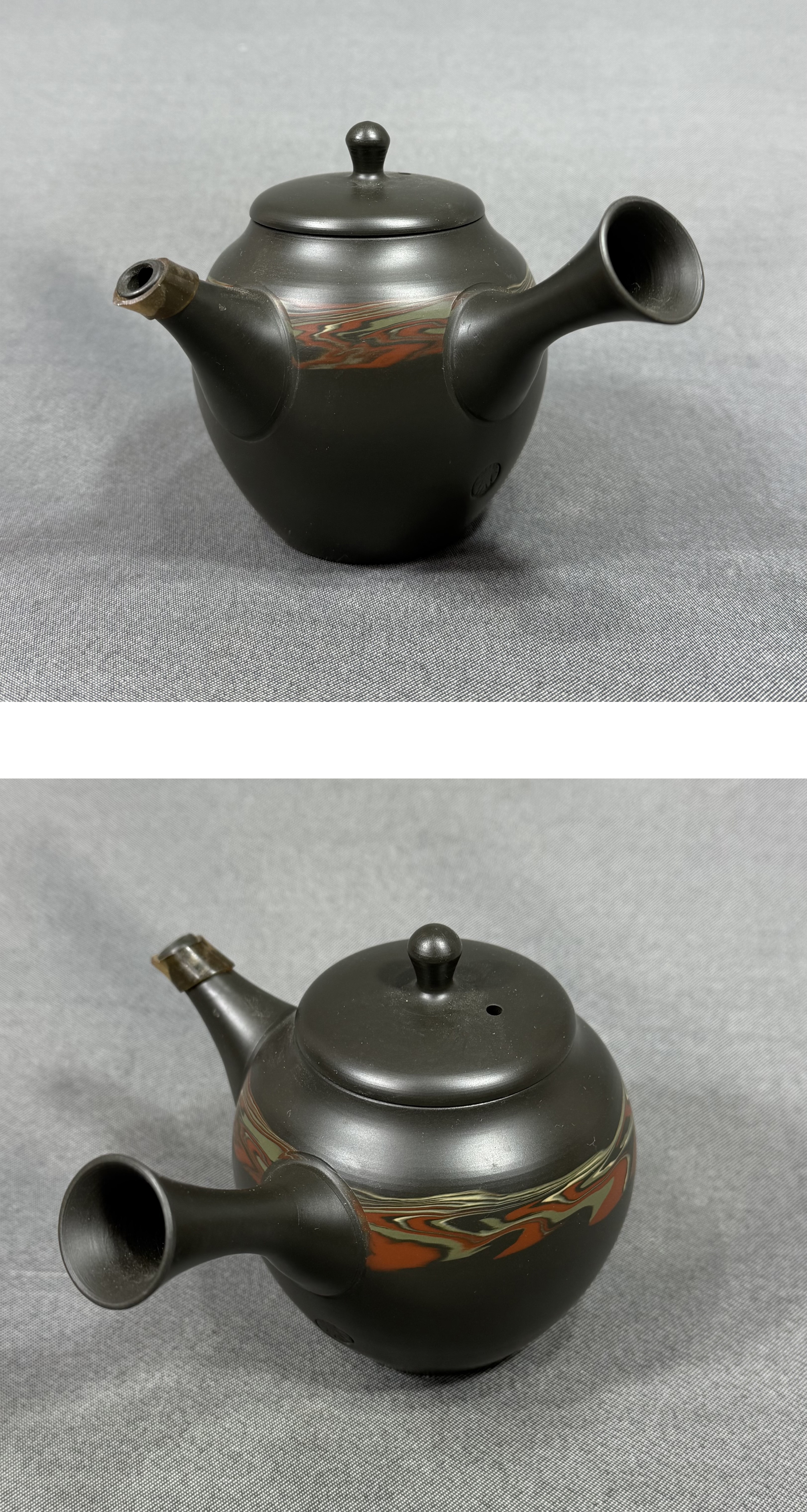 【風車】 常滑名工 谷川菁山 緑泥 練込 急須 常滑焼 茶道具▲在銘▲愛知の伝統工芸 陶銘 陶磁器 茶器 煎茶道具 茶注 陶器製急須 收藏