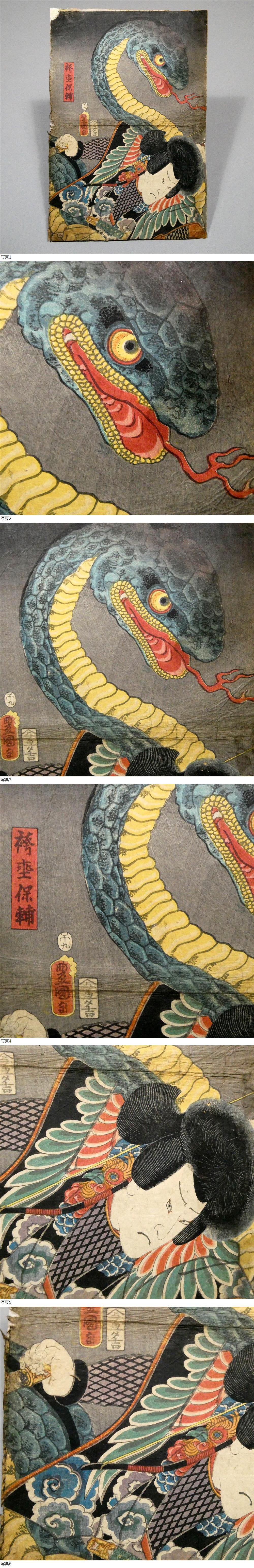 初代 歌川国貞◆妖怪画◆江戸時代 木板浮世絵◆「袴垂保輔」◆大蛇と伝説的盗賊 貴族出身の罪人■豊国三代■歌麿 北斎 広重 国芳 錦絵 5 收藏