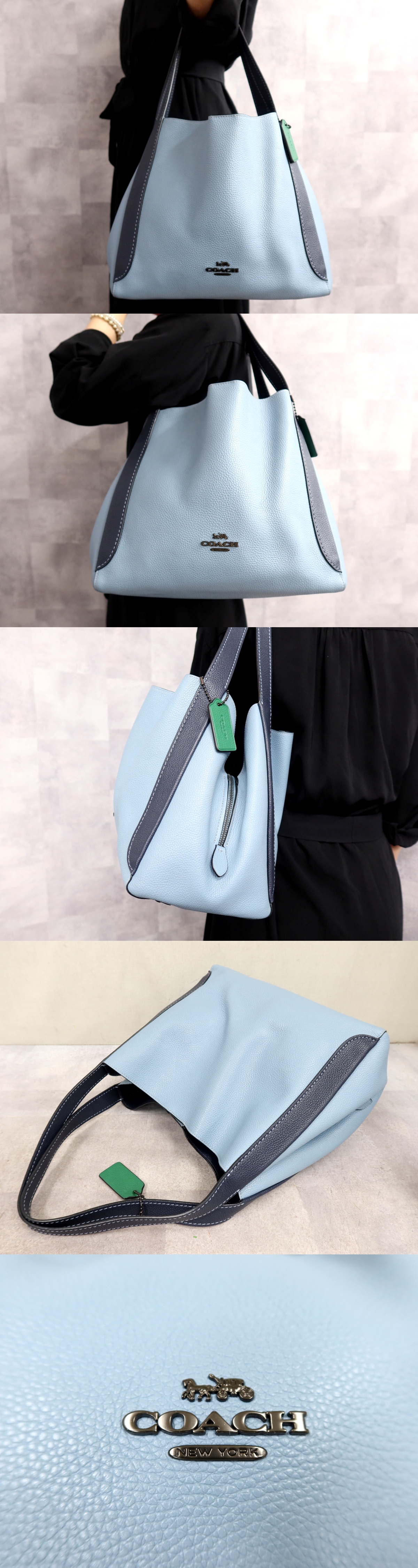 ●超美品●COACH コーチ●ハドリー ホーボー●76088●カーフ レザー 本革●トート バッグ●ライトブルー ネイビー●B5 書類 収納●Js66705 收藏