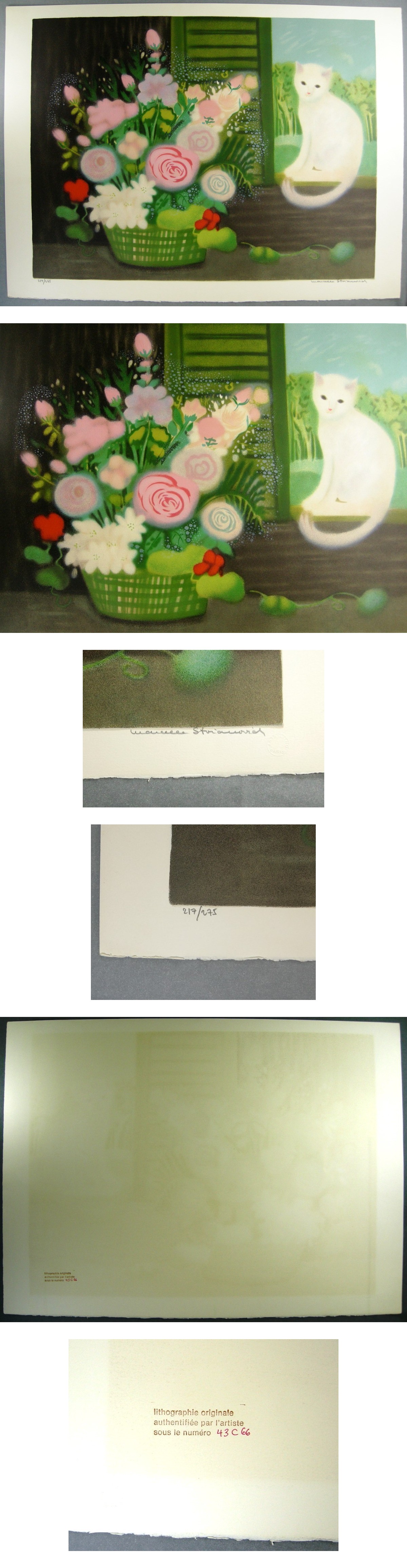 ★ マルセル・ストワノビッチ ◆ リトグラフ ◆ 花とネコ ◆ 直筆サイン入り ◆ シート ♪ 激レア 收藏