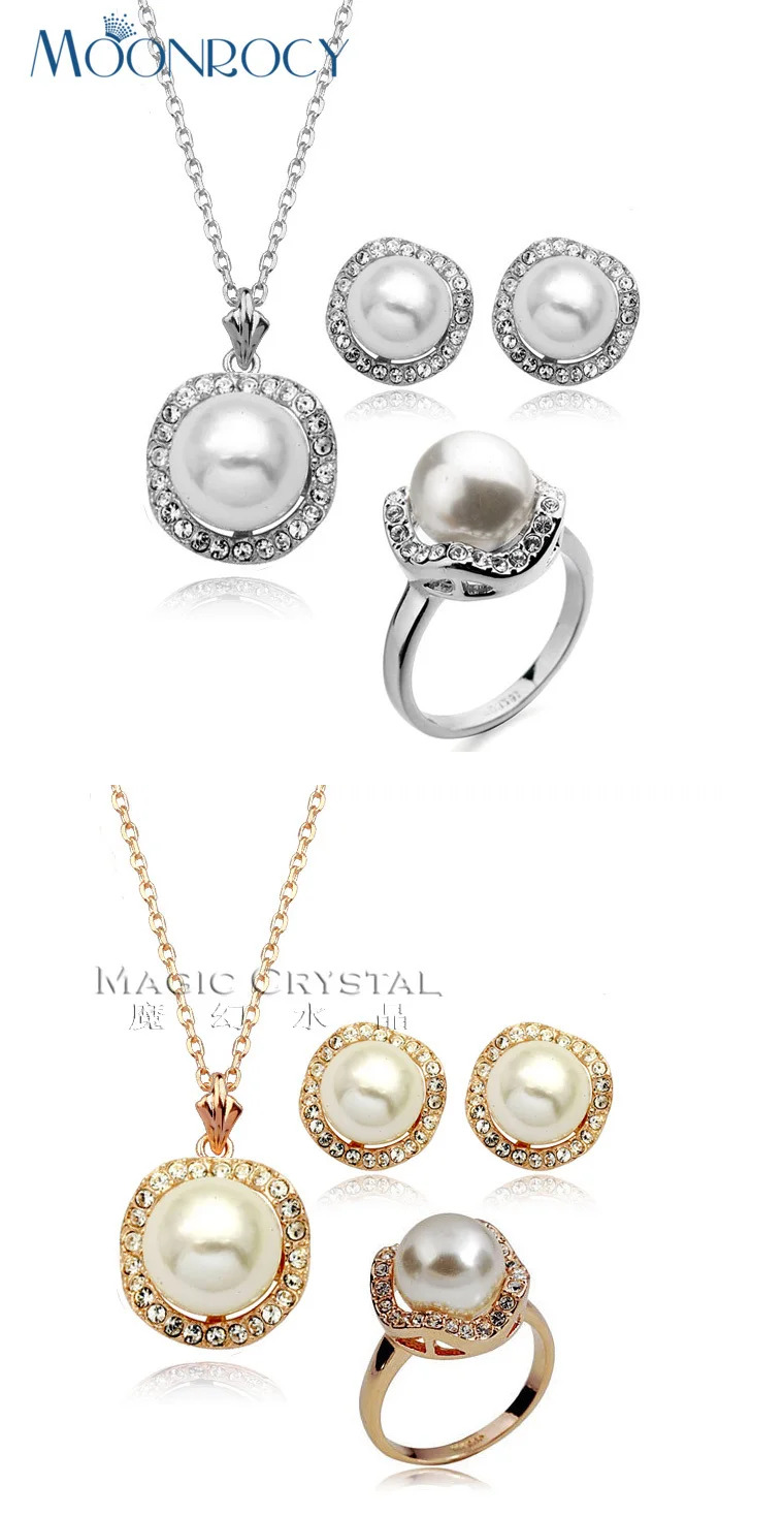 ピアス 指輪 リング ネックレス クリスタル シルバー パール レディース フリー カラー ファッション イミテーション ジュエリー セット 收藏