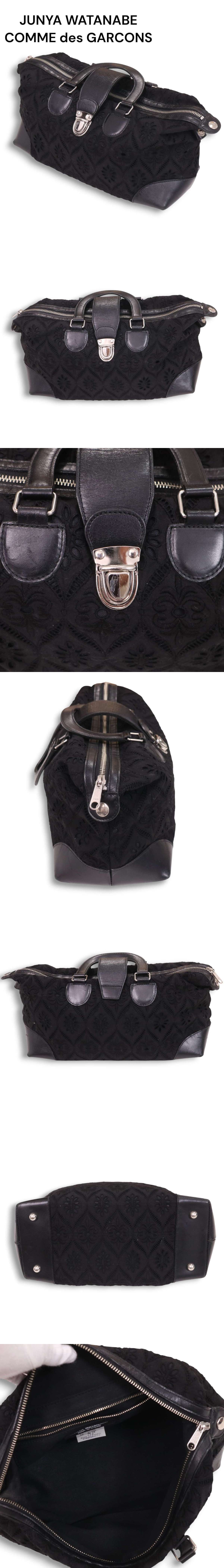 JUNYA WATANABE COMME des GARCONS ジュンヤワタナベ コムデギャルソン レザー×レース ハンド バッグ Sz.F レディース 黒 收藏