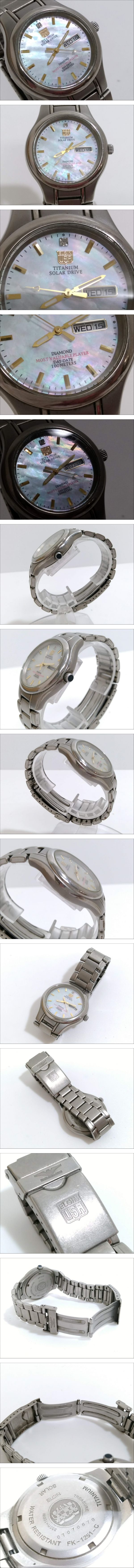 【美品】ELGIN エルジン SOLAR DRIVE ソーラードライブ FK-1251-C チタニウム デイデイト シェル文字盤 ソーラー腕時計/作動中/05AK110412 收藏